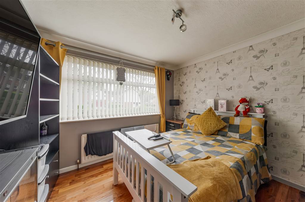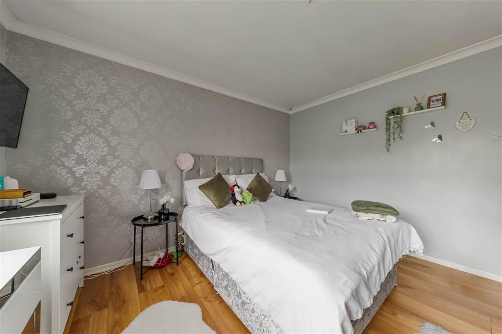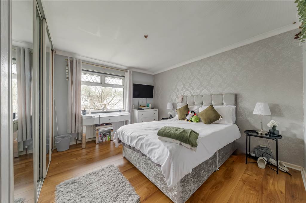 Laminate wood flooring, cornice ceiling, panelled radiator, sliderobes.