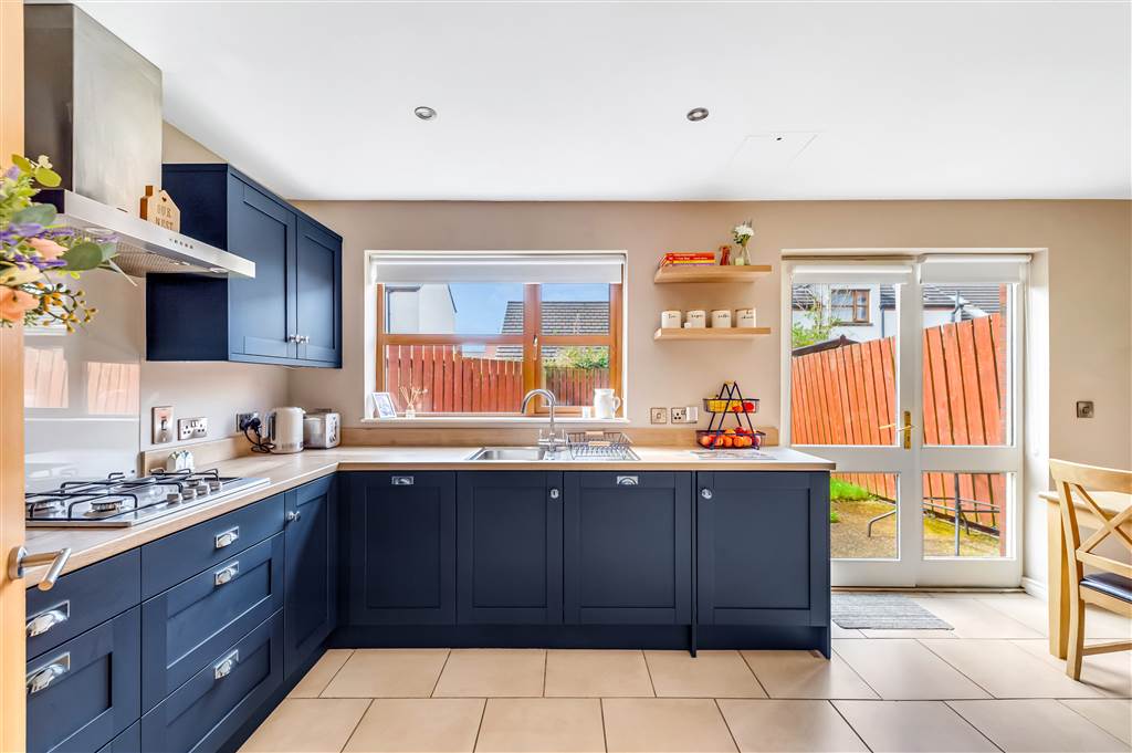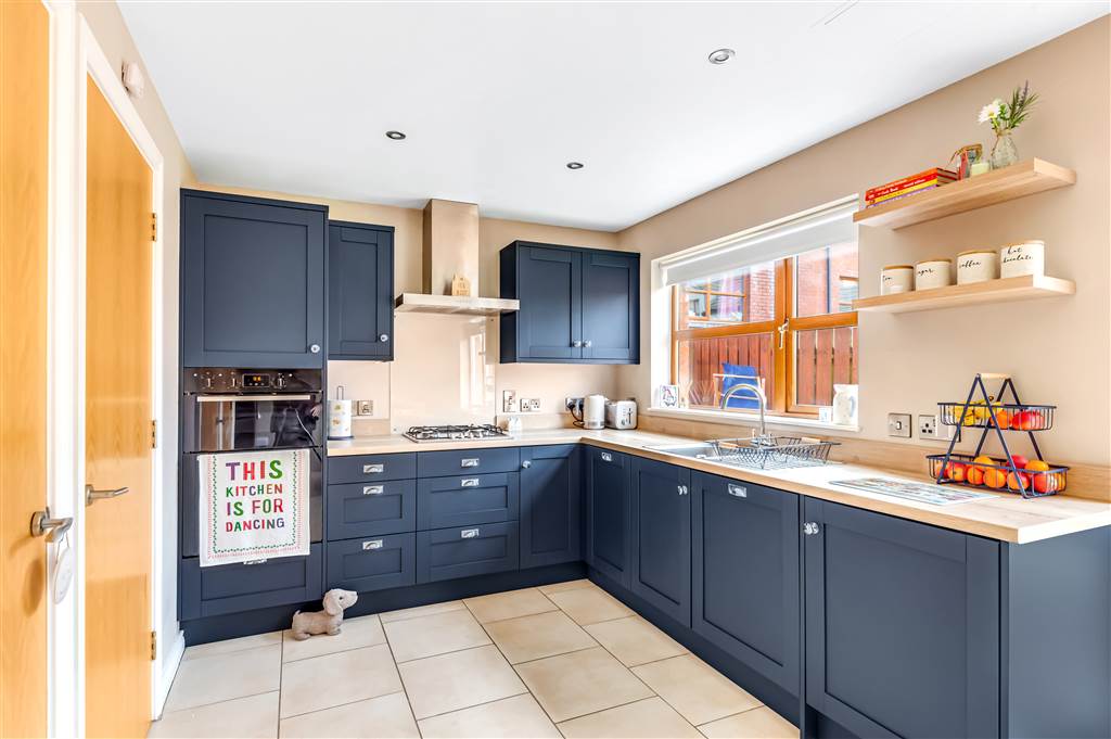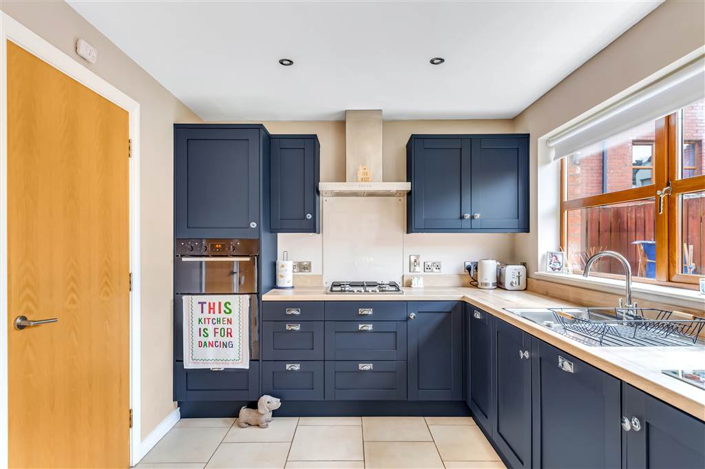 Excellent range of high and lovel units, Formica work sufaces, stainless steel sink unit with mixer taps, 4 ring gas hob with stainless steel extractor fan, build in double oven, integrated bin storage, integrated dishwasher, space for American style fridge / freezer, double panelled radiator, storage cpboard with gas fired central heating boiler, recessed spot lighitng, double panelled radiator.