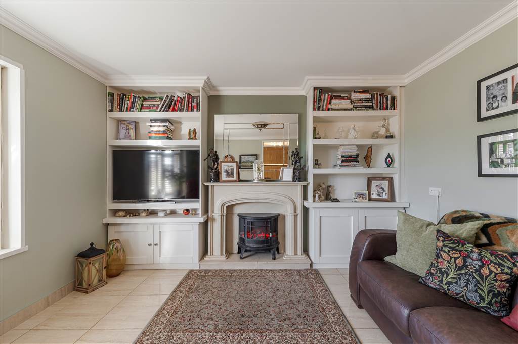 Custom built shelving and cupboards, cornice ceiling, ceramic tile flooring, double panelled radiator.