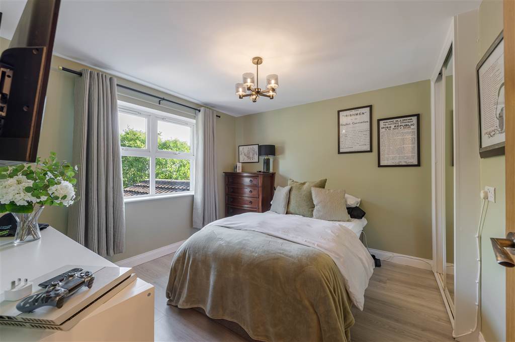 Laminate wood flooring, panelled radiator, mirror sliderobes.