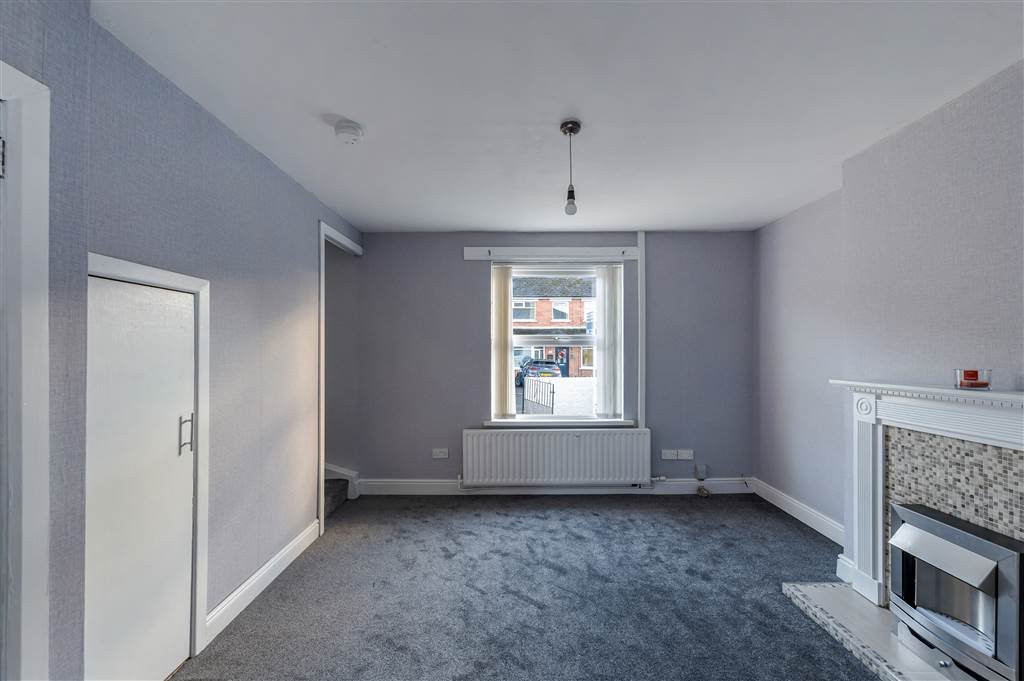 Feature fireplace tiled and inset and hearth, storage cupboard, double panelled radiator.