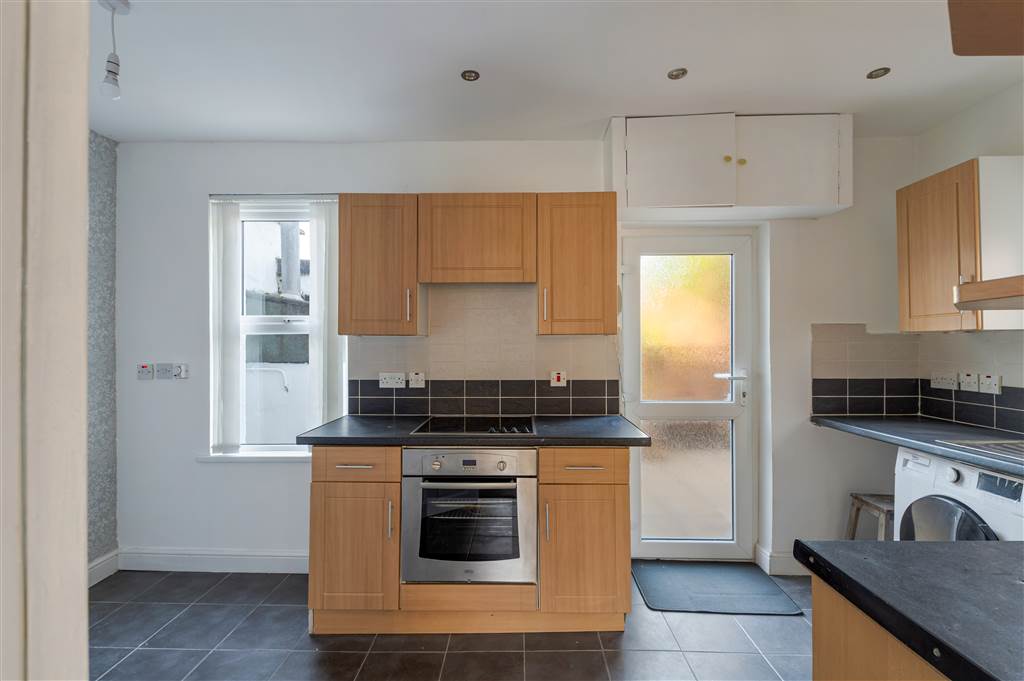 Excellent range of high and low level units , Formica work surfaces, stainless steel sink unit, 4 ring ceramic hob and electric oven, stainless steel extractor fan, dishwasher space, plumbed for washing machine, partly tiled walls, recessed spot lighting, double panelled radiator.
