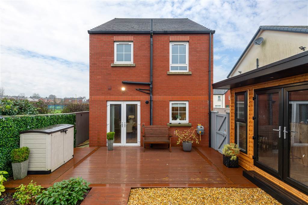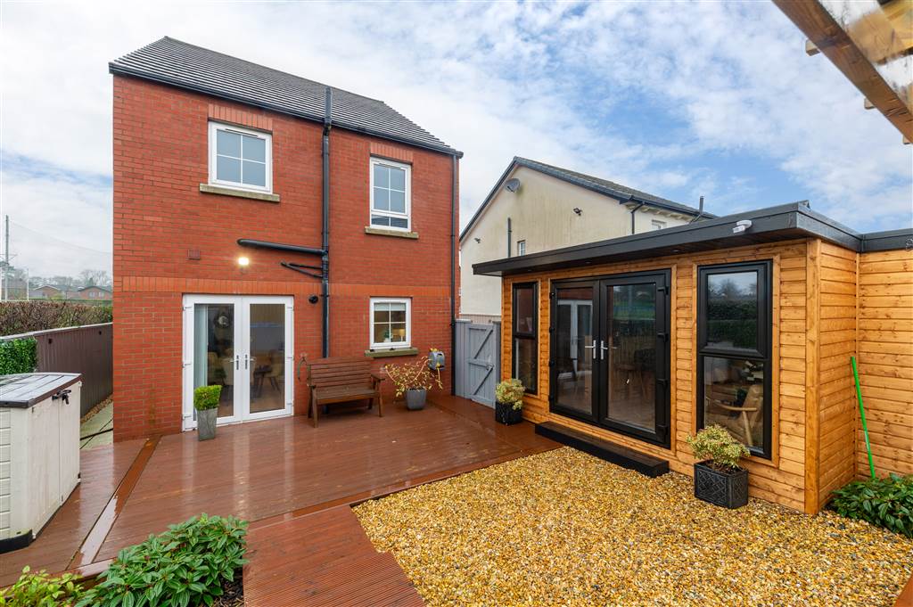 Each room in this home is beautifully presented and immaculately maintained, the attention to detail throughout is exceptional with many high quality finishes. On entering you are greeted by a bright hallway, the spacious lounge is complimented by a feature multi fuel stove. The contemporary kitchen is impeccable with plenty of storage and integrated appliances, there is also a handy downstairs W.C. Upstairs you will find three generous bedrooms with master bedroom en-suite and a luxury white bathroom suite. Externally this property certainly has plenty of kerb appeal, the landscaped garden to the rear has been lovingly manicured and offers great space for summer barbecues. Complementing this exceptional outdoor setting is a recently constructed bespoke bar/utility room, This impressive addition provides a sophisticated space ideal for entertaining in style or enjoying year-round versatility.