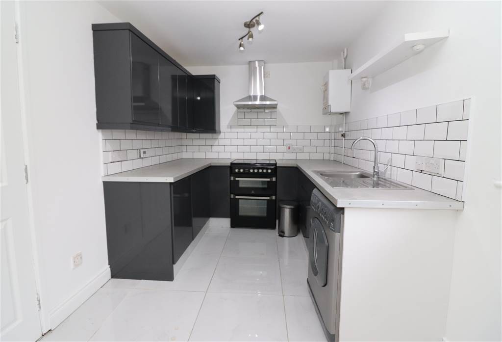 Excellent range of high and low level units. Single drainer stainless steel sink unit. Electric cooker circuit. Extractor fan. Plumbed for washing machine. Polished porcelain tiled floor. Part tiled walls.