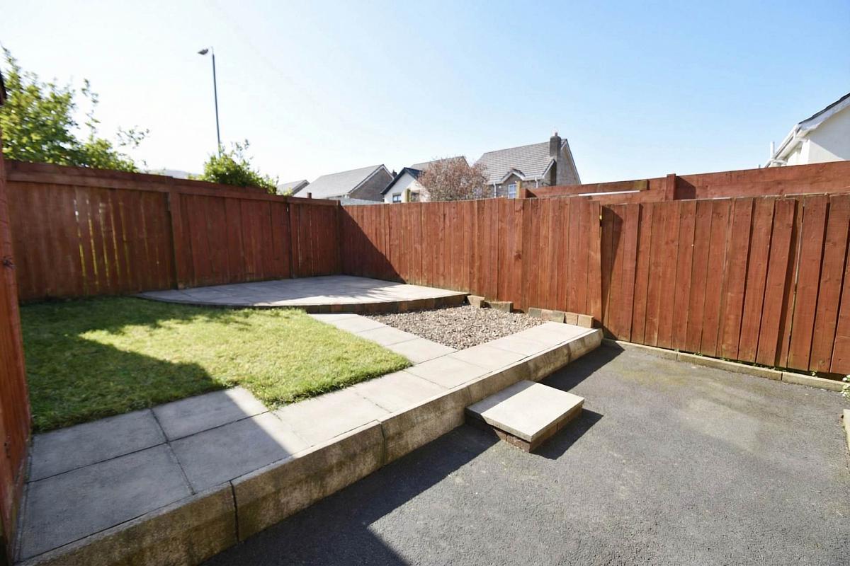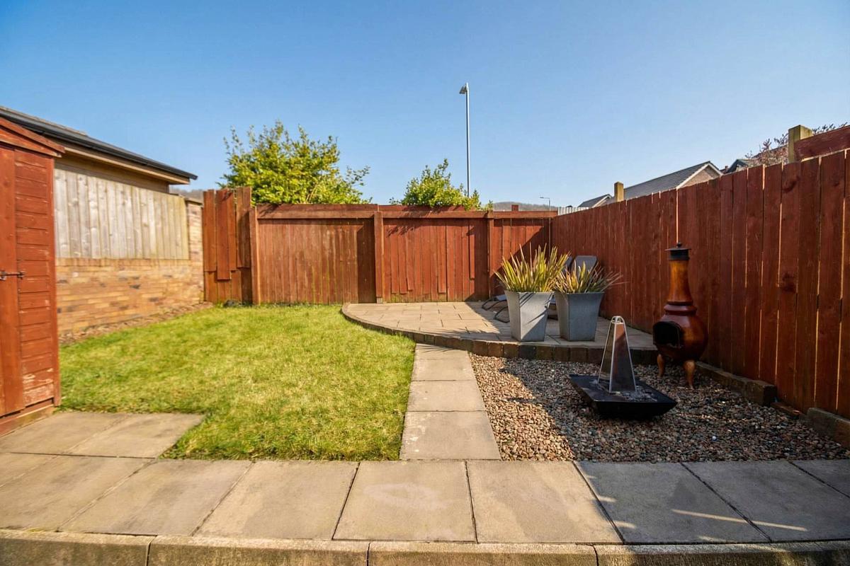 Fully enclosed garden lawn with patio area