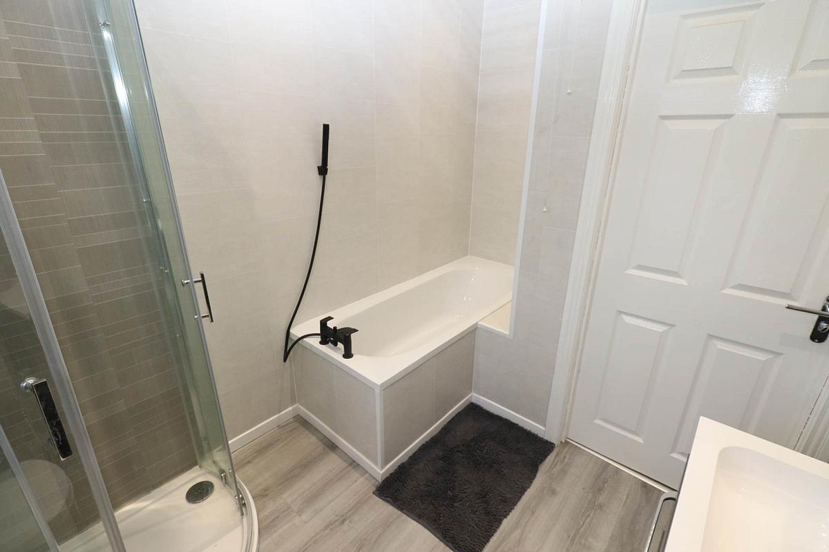 White Family Bathroom with Bath and Shower Facilities