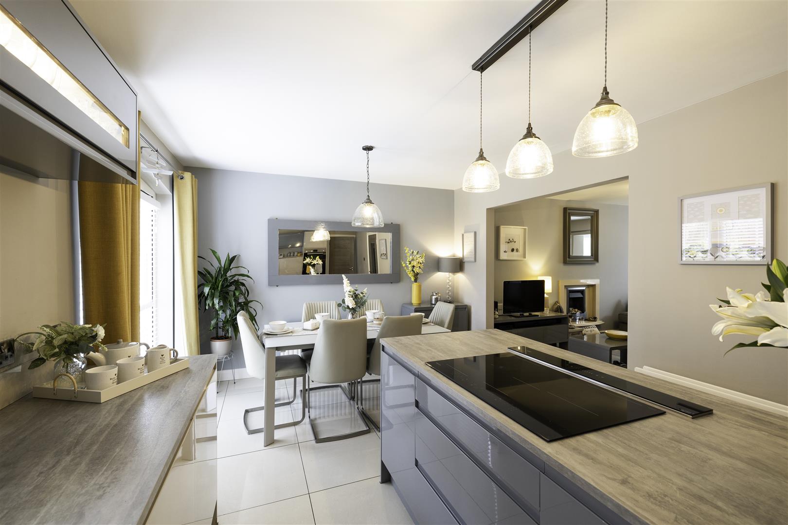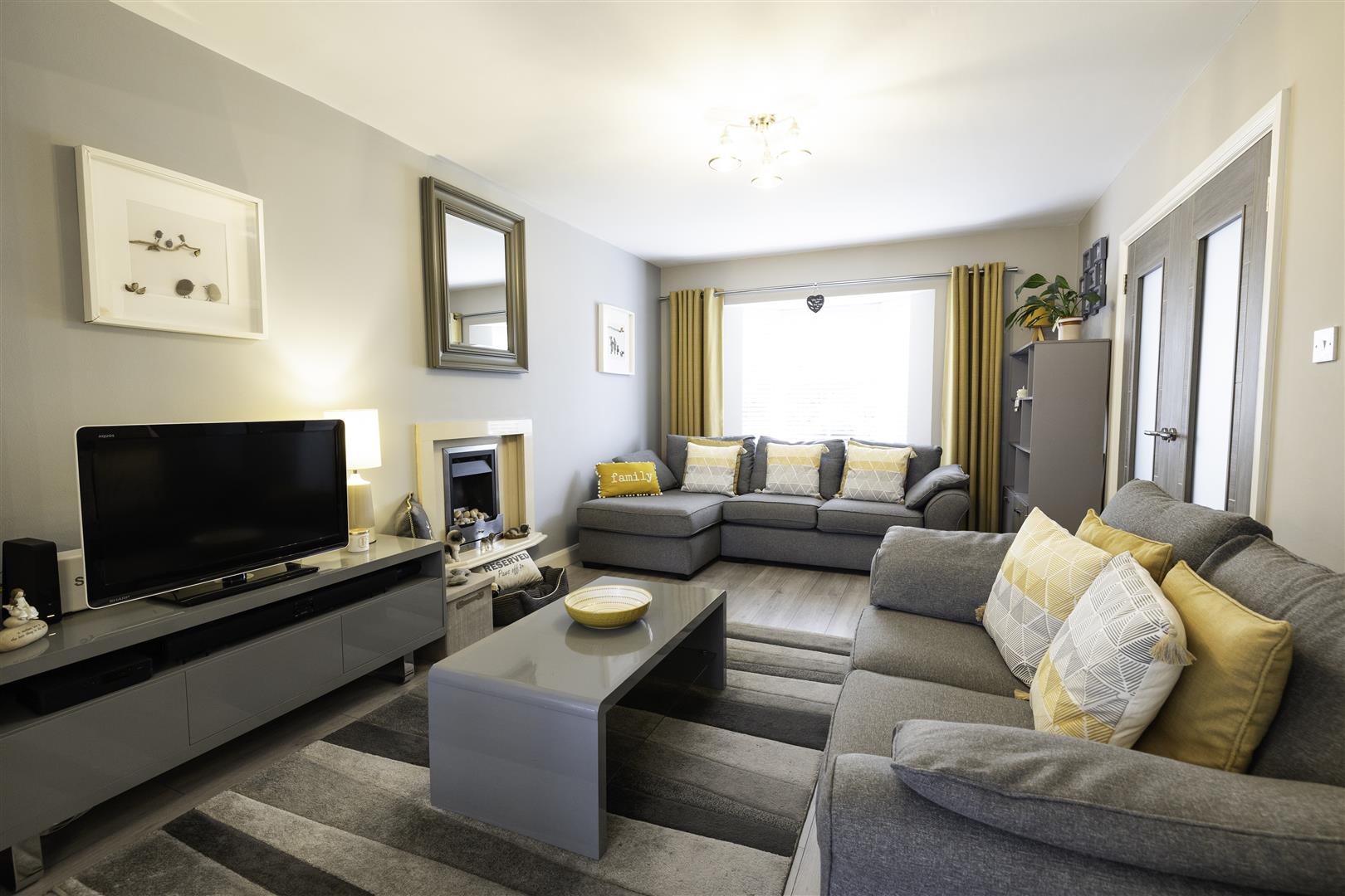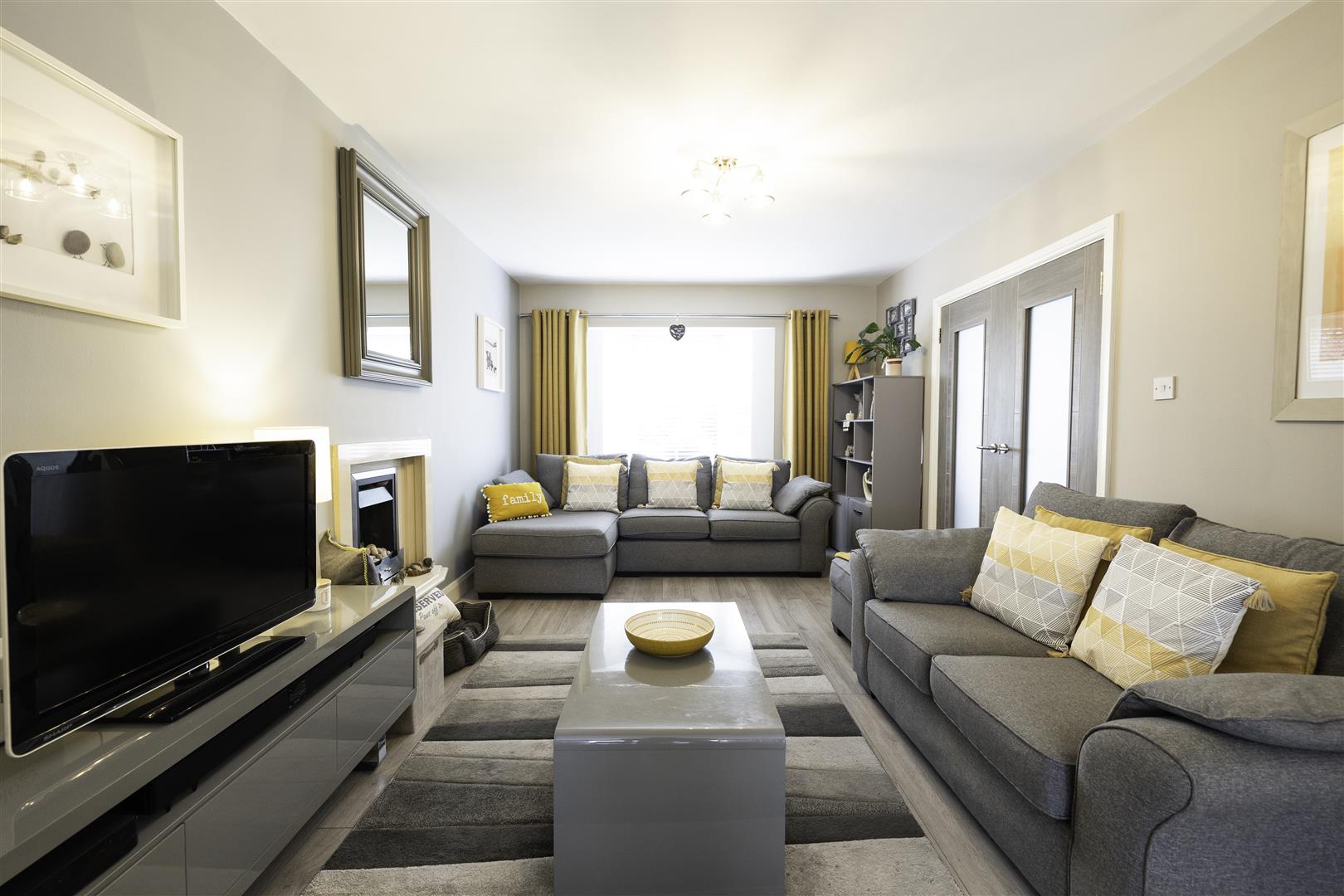 The kitchen is approx 5 years old and has a range of gloss taupe and cashmere fitted soft closure units, stone effect worktops, a central island and a range of integrated appliances. Double doors open up onto the landscaped rear garden. The kitchen dining room, opening into the main living room is the perfect layout for both modern living and entertaining.