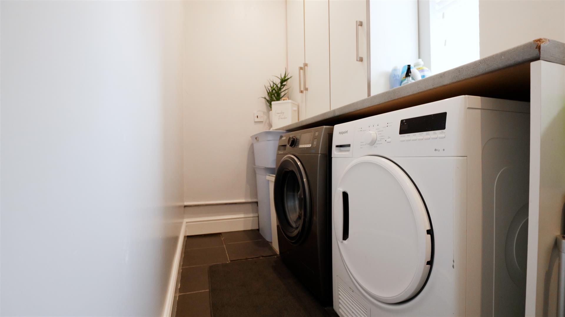 Upvc double glazed door and window to rear, fitted worktops and storage, space and plumbed for washing machine and tumble dryer, enclosed gas central heating boiler
