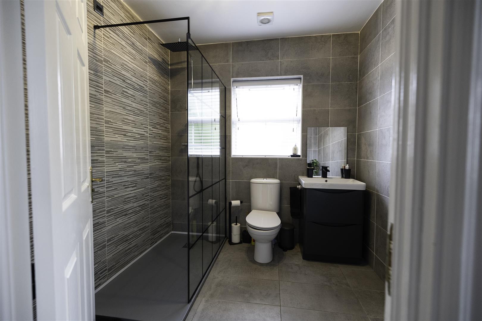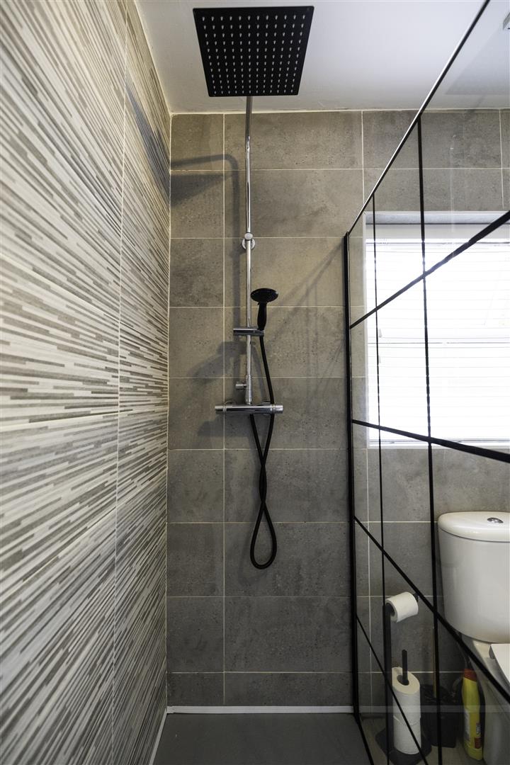 On the first floor are the three bedrooms and a contemporary shower room, with fully tiled walls and floor, double shower cubicle with matt black fittings, a wash hand basin with matching matt black vanity unit and a close coupled wc.
