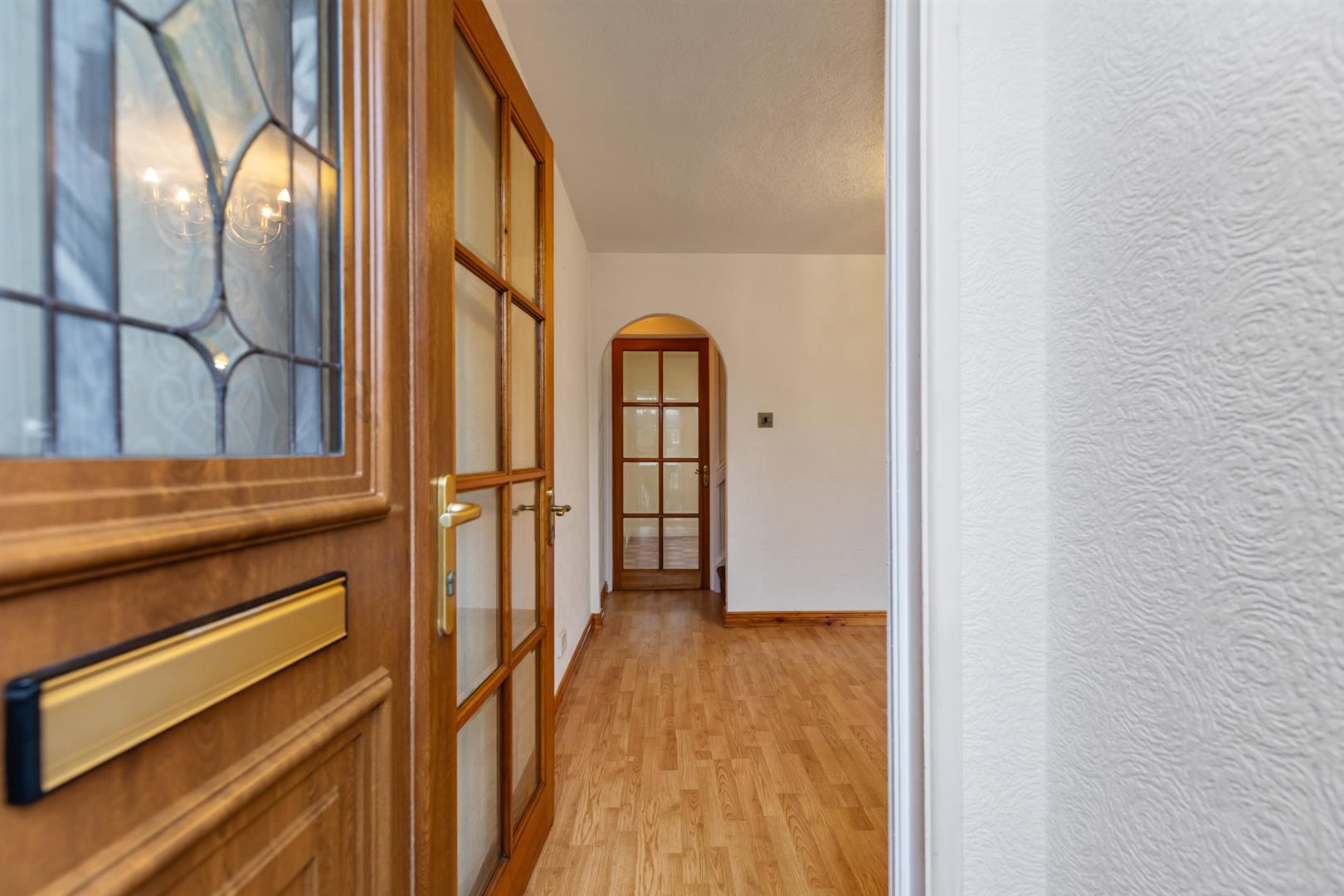 PVC front door, laminate wood flooring.