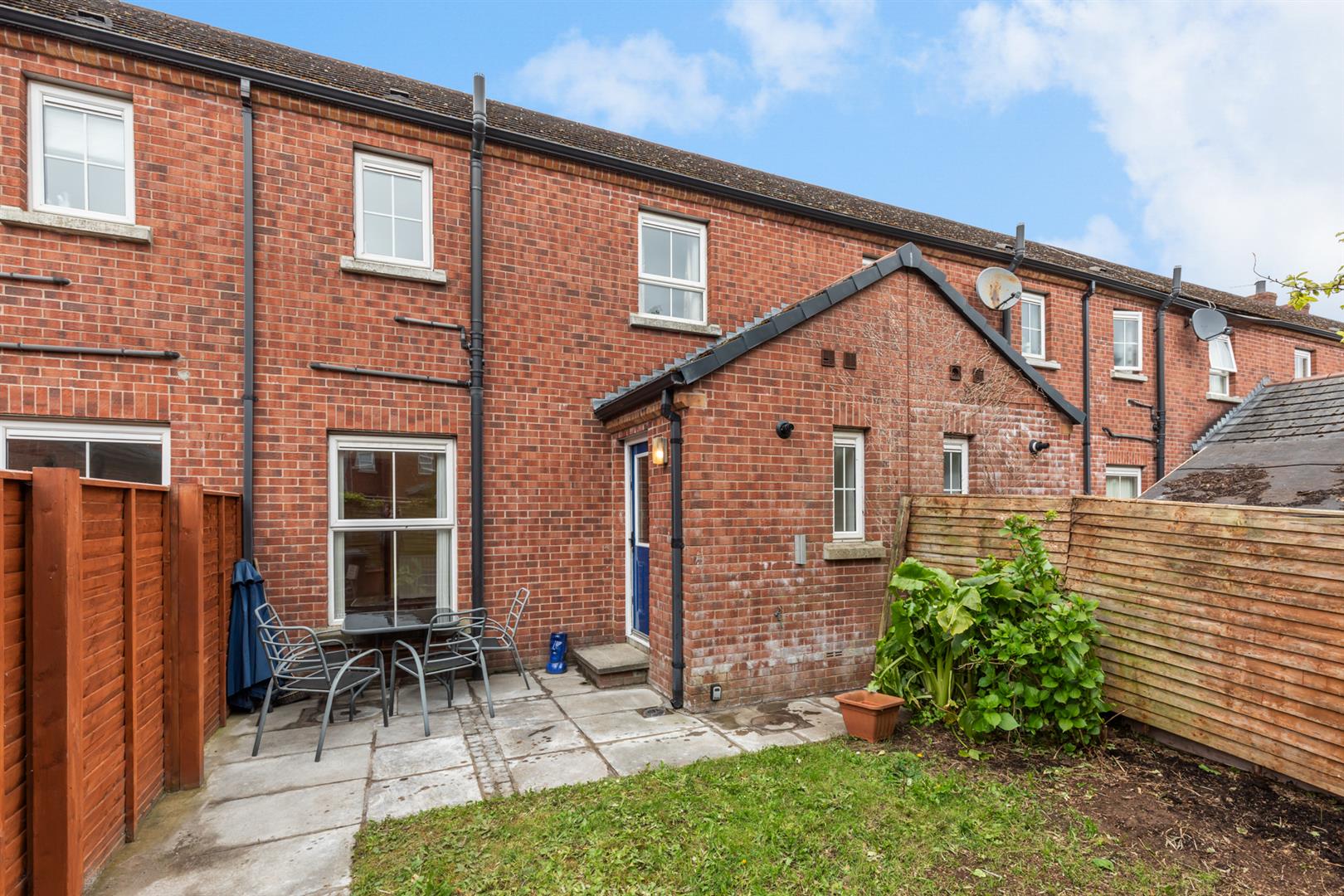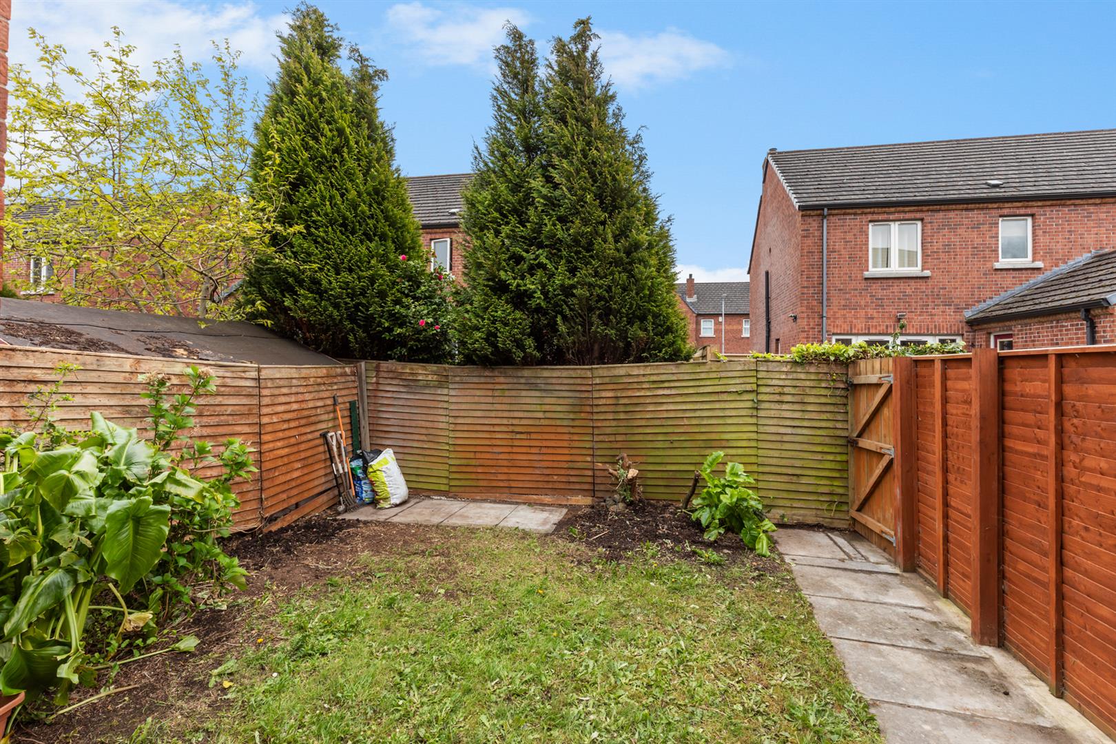 Rear Patio And Garden In Lawn With Boundary Fencing