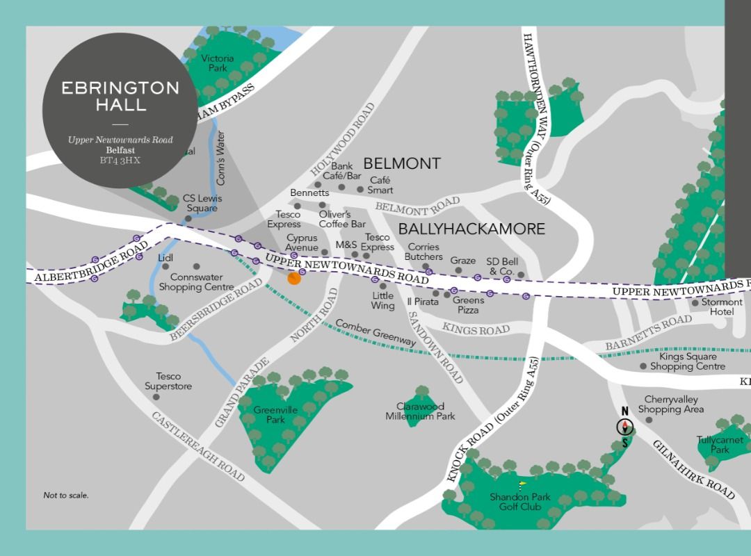 Whats more, with a city cente address comes easy access to a wide variety of superb amenities. An Array of convenience stores, including Tesco Express and M&S Foodstore, and impeccable recreational facilities, such as David Lloyd Leisure Centre, are all located within close proximity. Ebrington Hall is also situated at the gateway to a host of beautiful open spaces. From the picturesque Connswater Greenway and peaceful grounds of the Stormont Estate, to the treelines paths of Victoria Park and the luscious green fairways of Shandon Park Golf Club, there are certainly no shortage of exciting things to see and do.