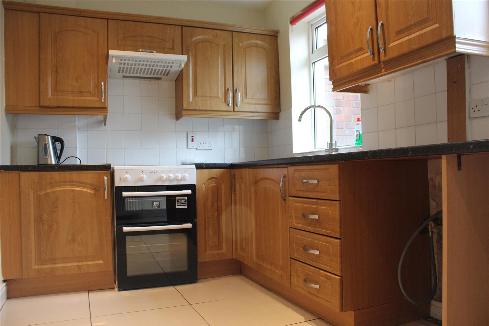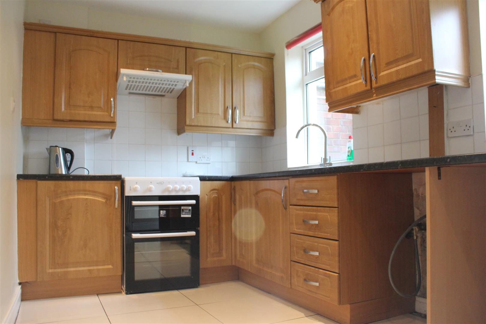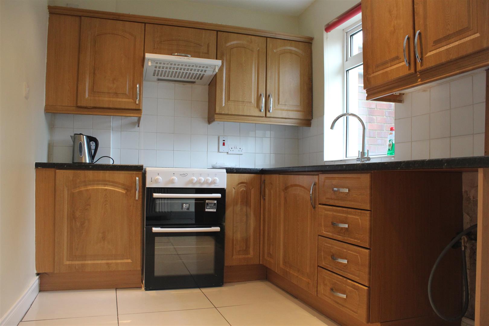The kitchen has a good range of high and low level wooden units, an oven, hob and extractor fan and tiled flooring, it has a large uPVC window again making the kitchen a bright space to be in, it is plumbed for white goods and has a back door leading onto a small yard.