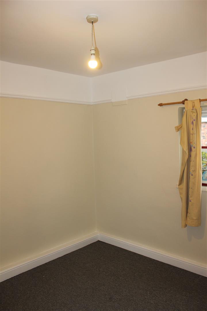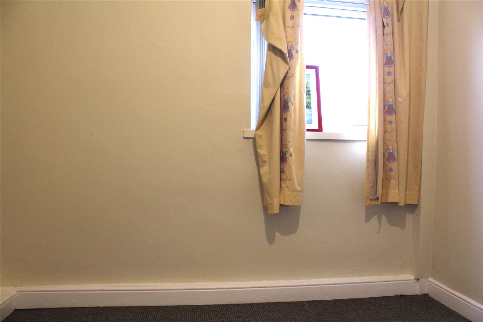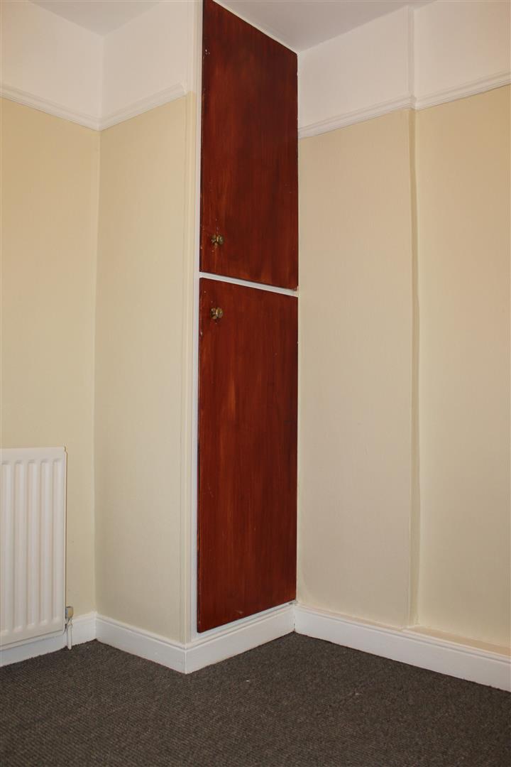 The second bedroom has carpeted flooring, skirting boards, cornice ceiling and a uPVC window with neutrally coloured painted walls and a built in cupboard making this smaller second bedroom an attractive but practical room.