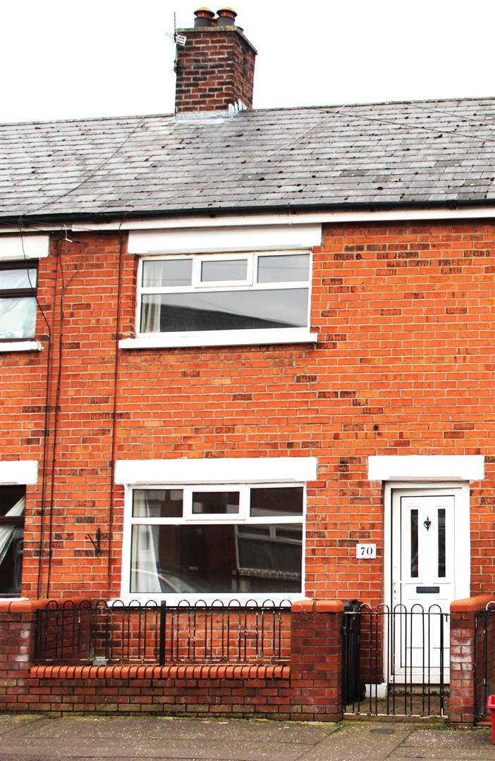 No. 70 Woodcot Avenue is beautiful 2 bed mid terrace property, located centrally within close proximity to local schools, transport links, Connswater Shopping Centre and within easy access to all major Motorways as well as Belfast City Centre. The property has a spacious living room decorated in neutral tones with a large uPVC window letting natural light flood into the room, laminate wooden flooring and skirting boards, off the living room is the well laid out kitchen with a fantastic range of high and low level units, tiled flooring with a door leading to the backyard. Upstairs there are two well proportioned bedrooms, the master bedroom boasting built in wardrobes, carpet and tastefully decorated walls, the second bedroom is slightly smaller but with the added benefit of a built in cupboard, carpeted flooring and neutrally painted walls. The bathroom has a low flush WC, pedestal sink and separate shower. Outside the property there is off street parking and a private back yard. To arrange a viewing of this beautiful mid terrace home, contact HMK Property on 028 90397712.