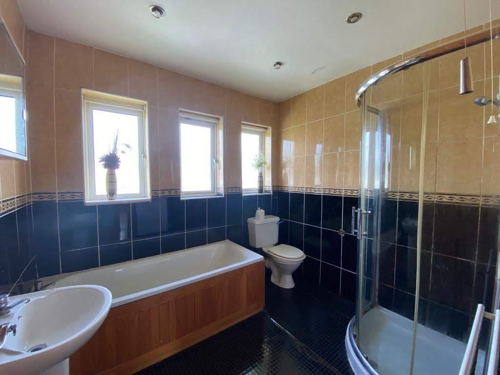 Comprising bath, whb and wc, walk in shower, recessed lighting, fully tiled walls and floor.