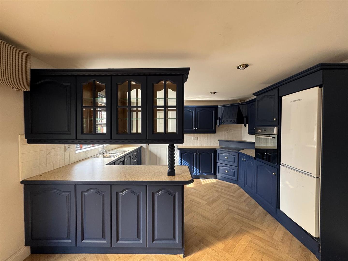 Having range of eye and low level units, tiling between units, hob, oven, corner extractor canopy, space for fridge / freezer, ample dining space.