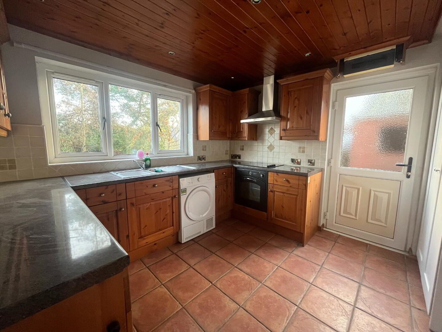 Kitchen:- 10' 8" x 10' 7" Fitted high & low level units, build in under oven with separate electirc hob. Washing machine plumbing, tiled floor, part tiled walls. PVC door to side.