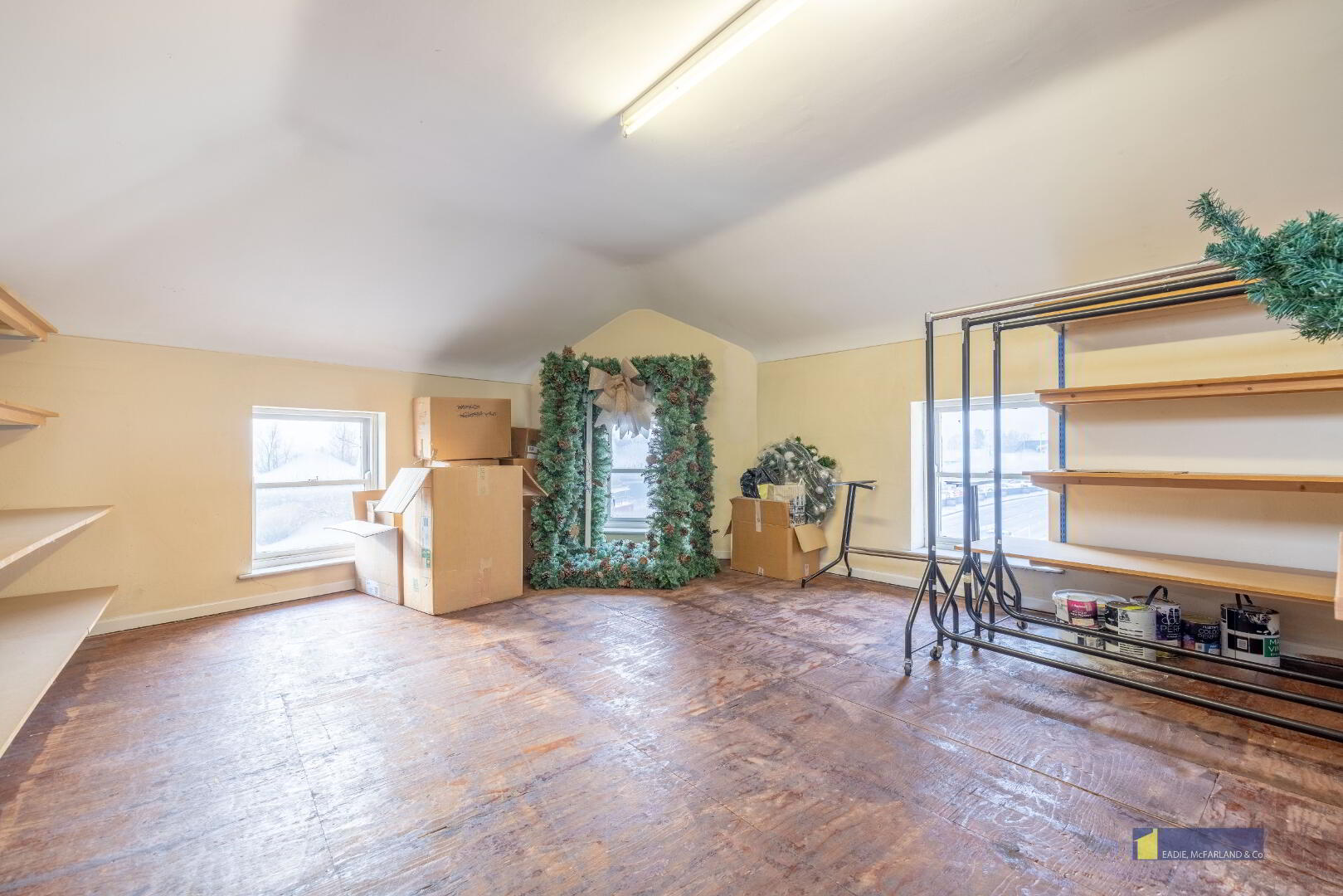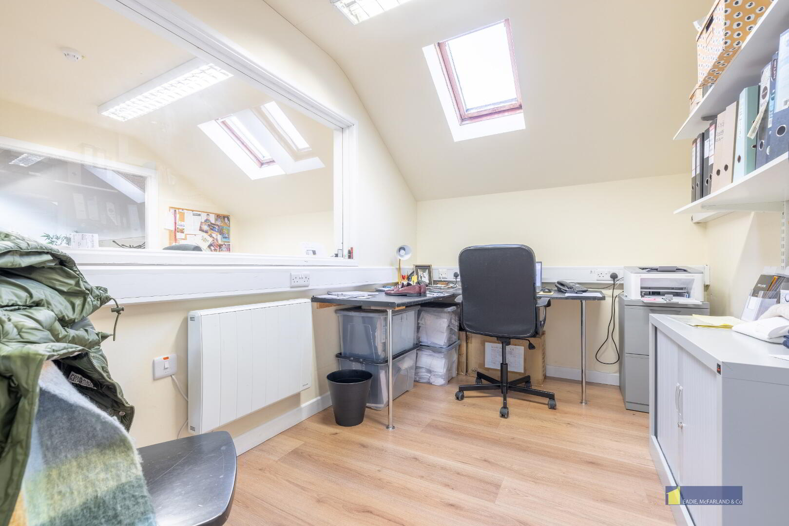 Second floor with office, storage and kitchen
