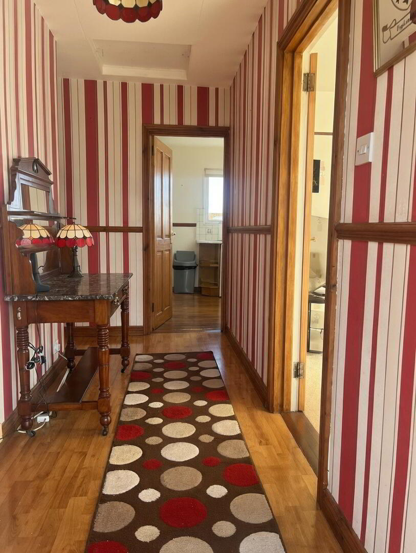 Kitchen: 13'5" x 9'2" Fully fitted with a range of eye and low level real wood units, tiled around worktops , 1 1/2 bowl ceramic sink unit with mixer tap, space for electric hob and oven, space for fridge, plumbed for washing machine, wood flooring, hotpress, dado rail, access to rear.