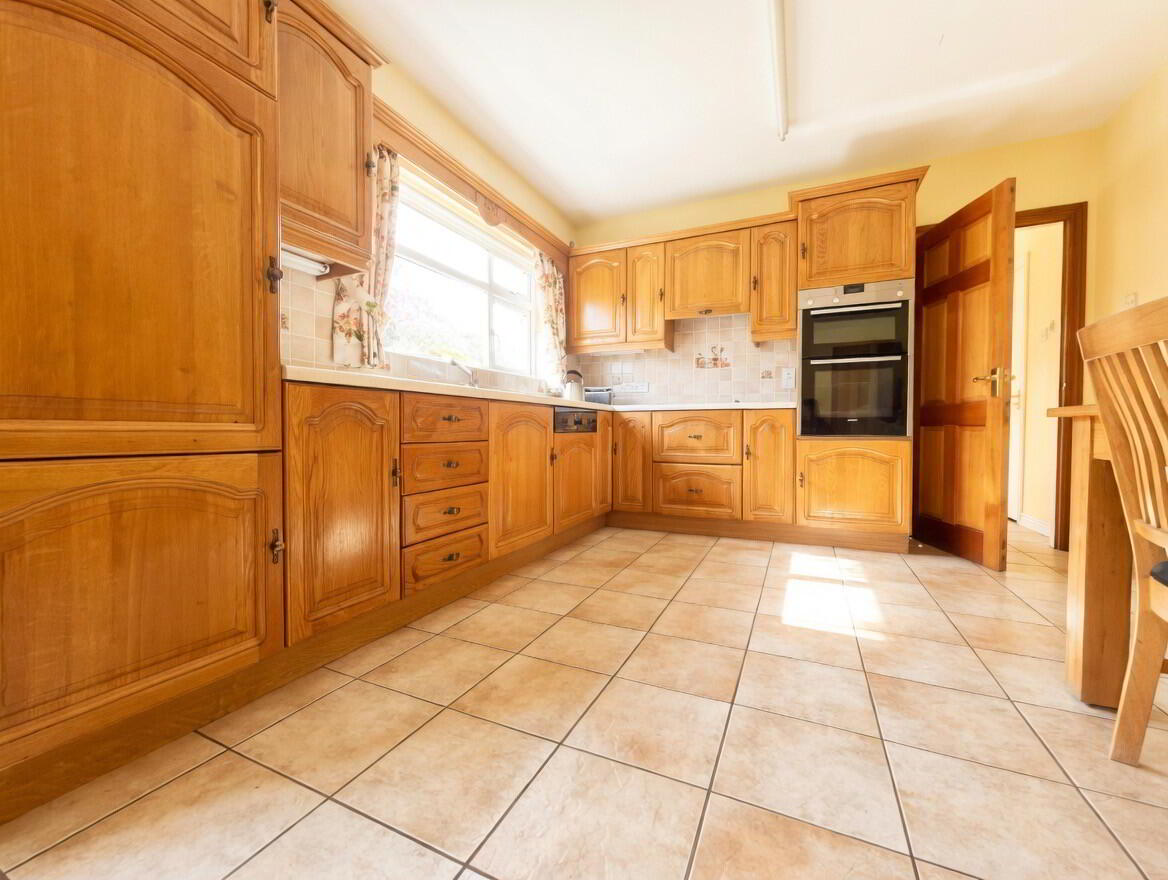 Kitchen – 18’1” x 11’ Fully fitted with extensive range of eye and low level deluxe oak units, tiled around worktops, pelmet, concealed under lighting, 1 ½ bowl stainless steel sink unit, built in electric hob, built in Siemens double eye level electric oven, integrated fridge, cooker hood, tiled floor, integrated Neff dishwasher, large dresser unit.