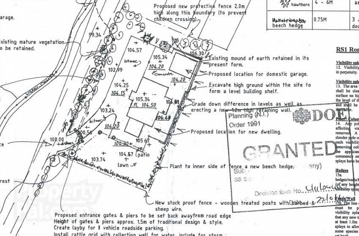 To the front of the site across the Carrowkeel Road you will own and have the views of the Mill Pond that once was the Mill Race to the Mill on the Lower Lough Eyes road. This is a beautiful water feature with a stone cased bridge leading you across to the extra land that will be included in the sale. The trench foundations have been put in place for the garage to hold the planning allowing the buyer to start building straight away. Services We are advised that electric, phone, water and drainage are available in the vicinity. A buyer is recommended to obtain confirmation from their surveyor or solicitor.