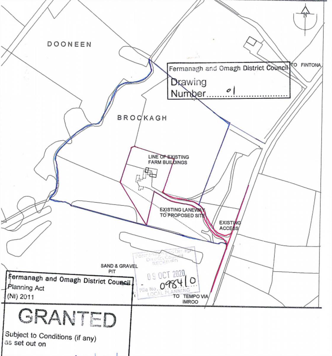 Circa 12 acres for sale with outline planning approved for a two storey detached house.