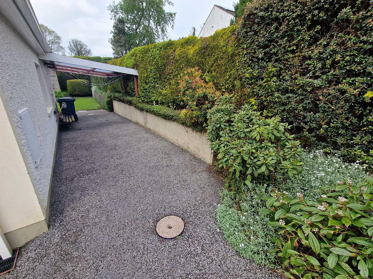 The front of the property is low maintenance with a small lawn area and tarmac driveway offering off street parking, to the side is a carport/lean to which leads to the rear patio and garden area. The back garden has a generous amount of space with a garden shed and is surrounded with mature hedges and trees adding extra privacy.