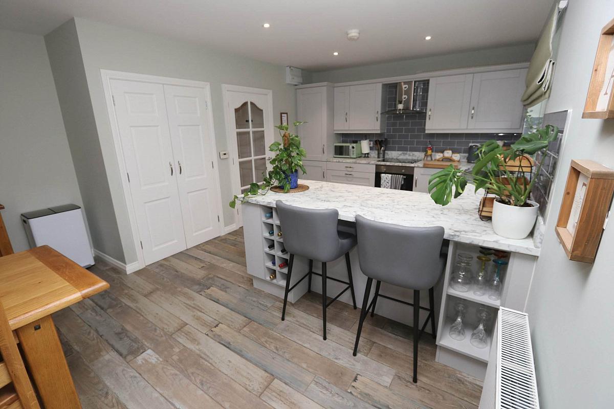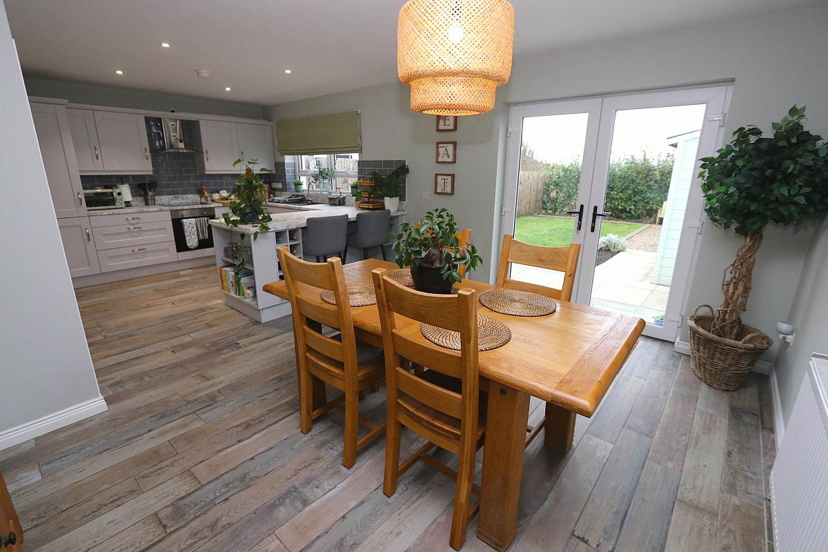 Open plan kitchen/dining space - integrated appliances & walk in larder cupboard