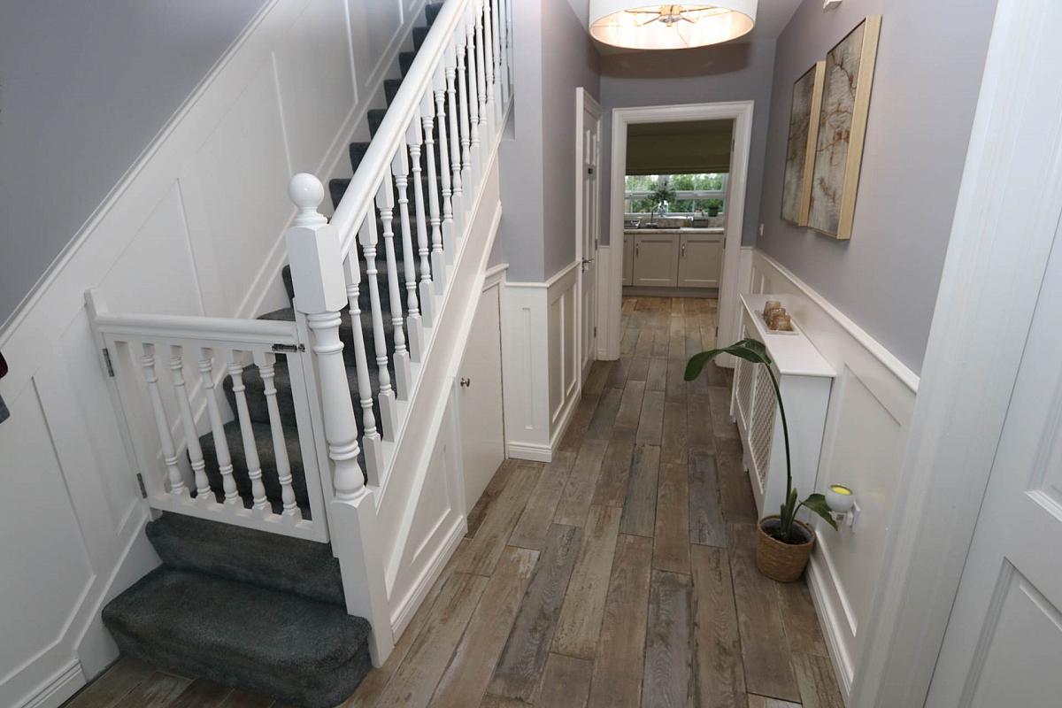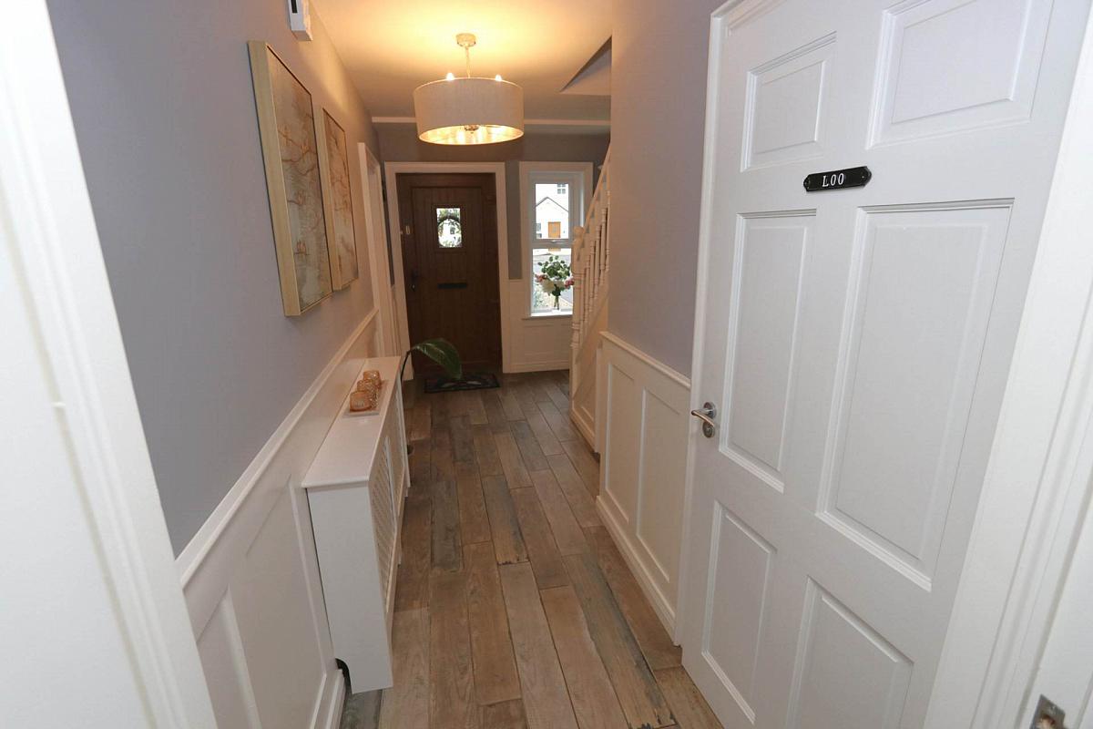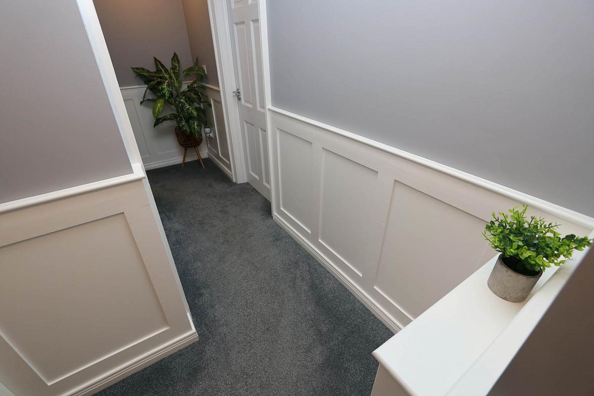 Upstairs, you'll find three generously sized bedrooms, two of which boast ensuite bathrooms, including the master with a walk-in wardrobe. Plush carpets and elegant wall paneling on the landing add a touch of luxury, while the stylish family bathroom completes the upper level.