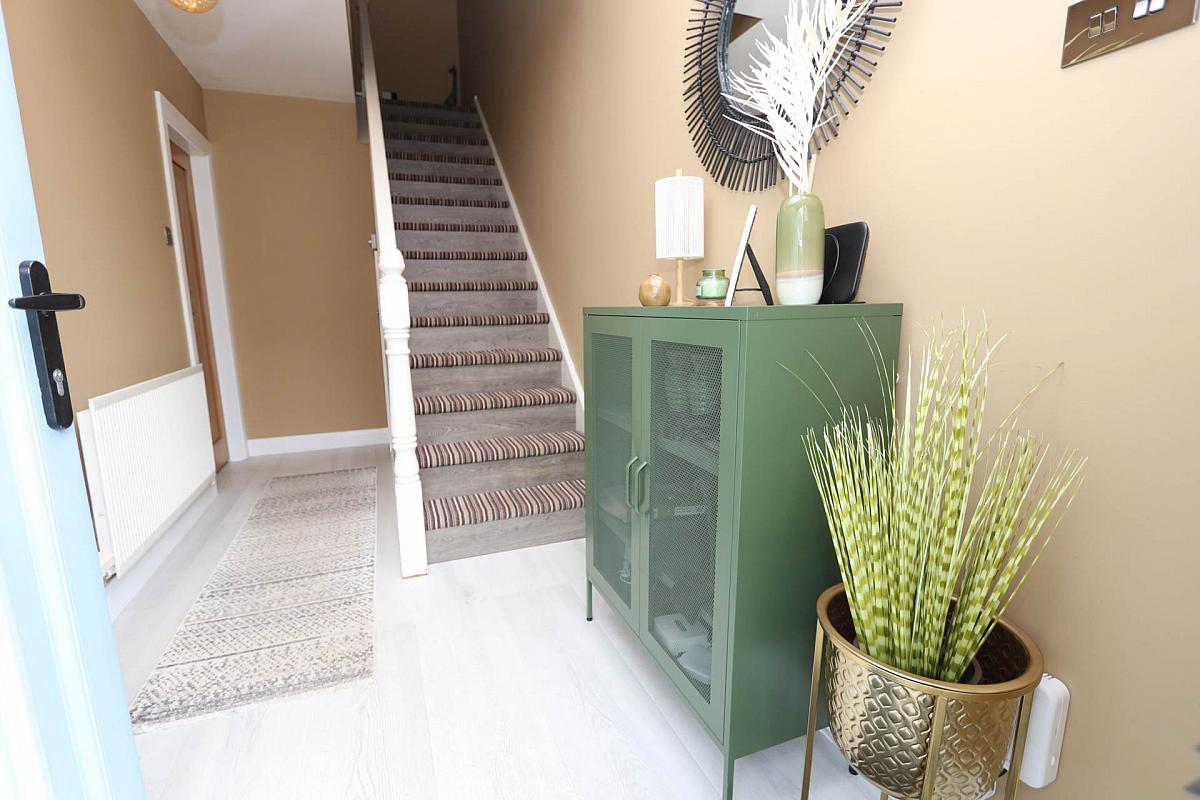 This refurbished three-bedroom semi-detached home offers contemporary living
