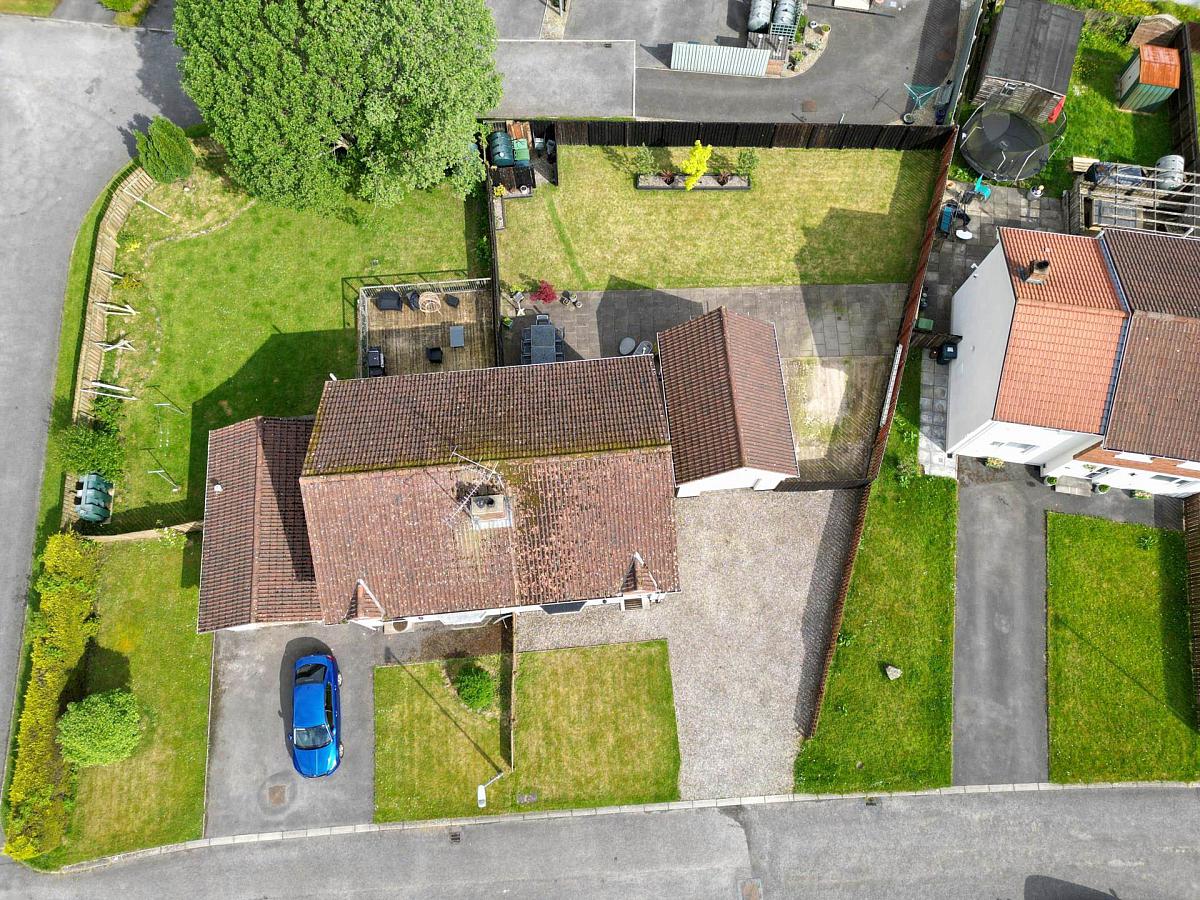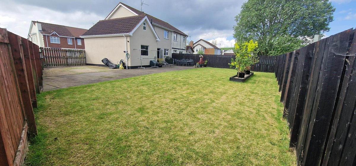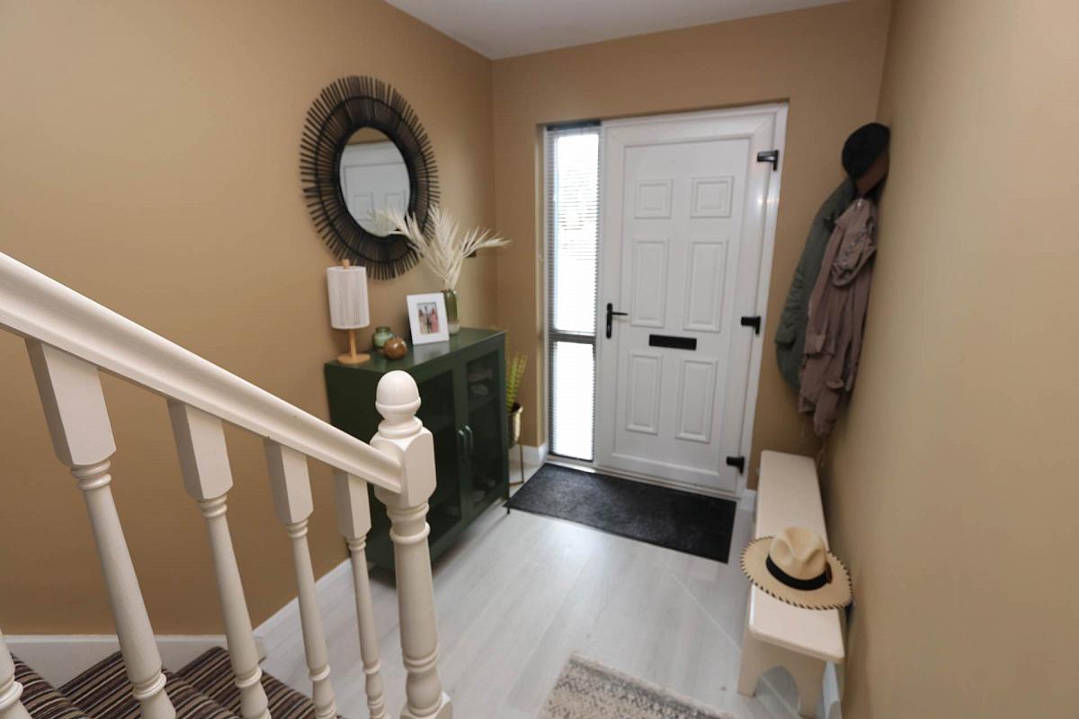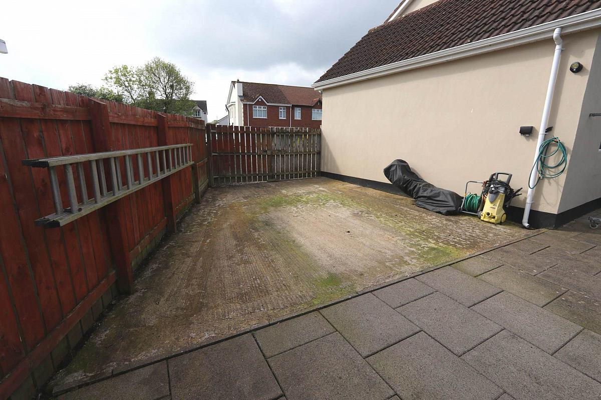 The property sits in a quiet development, with a stoned driveway providing ample parking for multiple vehicles and a small front lawn adds a touch of greenery. While a pedestrian gate grants access to the rear, here, a surprisingly expansive lawn and patio area extends the entertainment space and provides a secure environment. This arrangement also provides additional enclosed parking, ideal for accommodating a campervan or a boat. The large detached garage is outfitted with plumbing for a washing machine, a sink with hot/cold taps, a ground-floor radiator, a fully floored first floor, and a roller door for access.