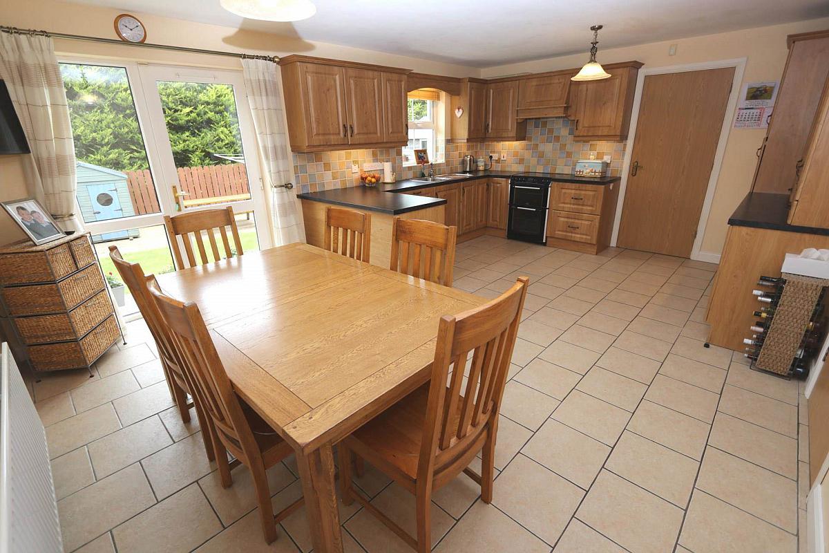 Open plan kitchen/dining area with patio doors to the enclosed back garden