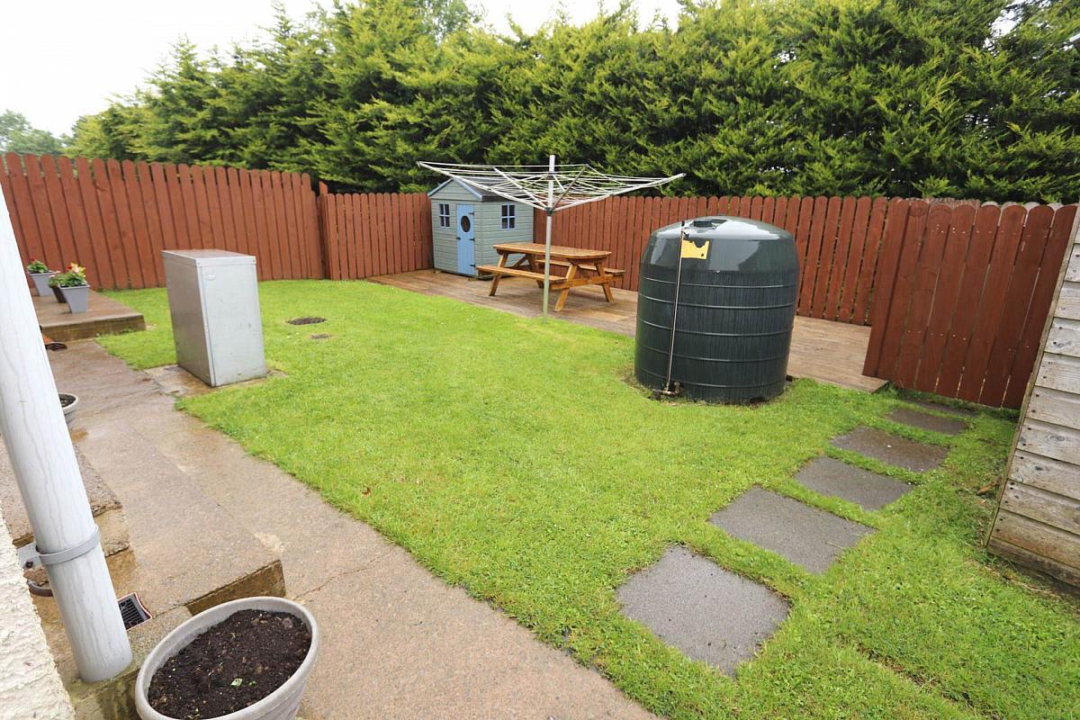 Enclosed garden to the rear featuring a decking area & shed