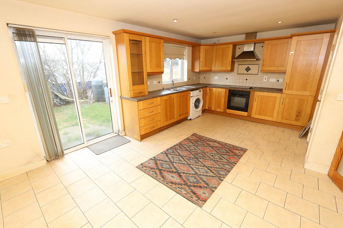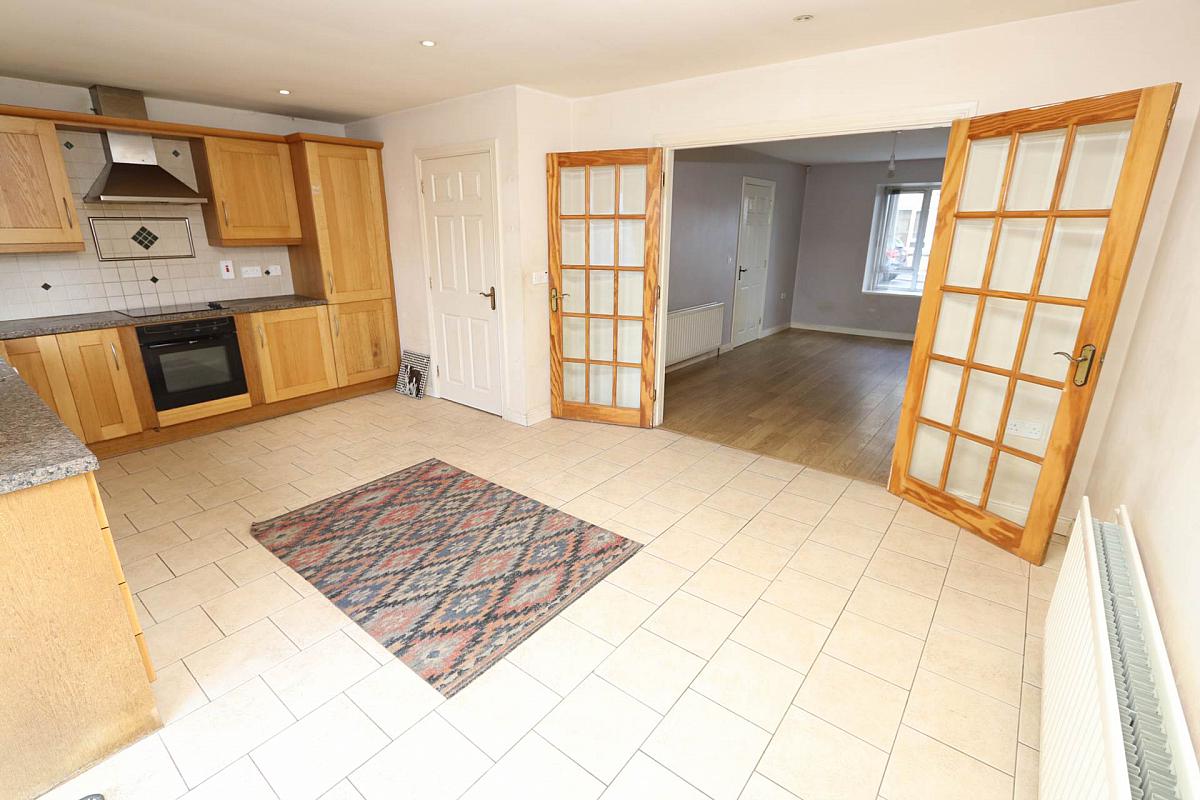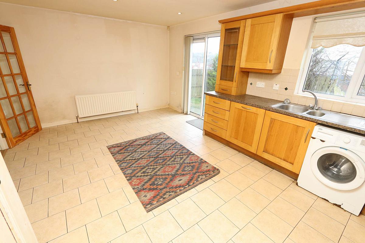 Bright & Spacious Open-Plan Kitchen/Dining Area Offering ample space for cooking and dining, with patio doors leading to the enclosed rear garden.