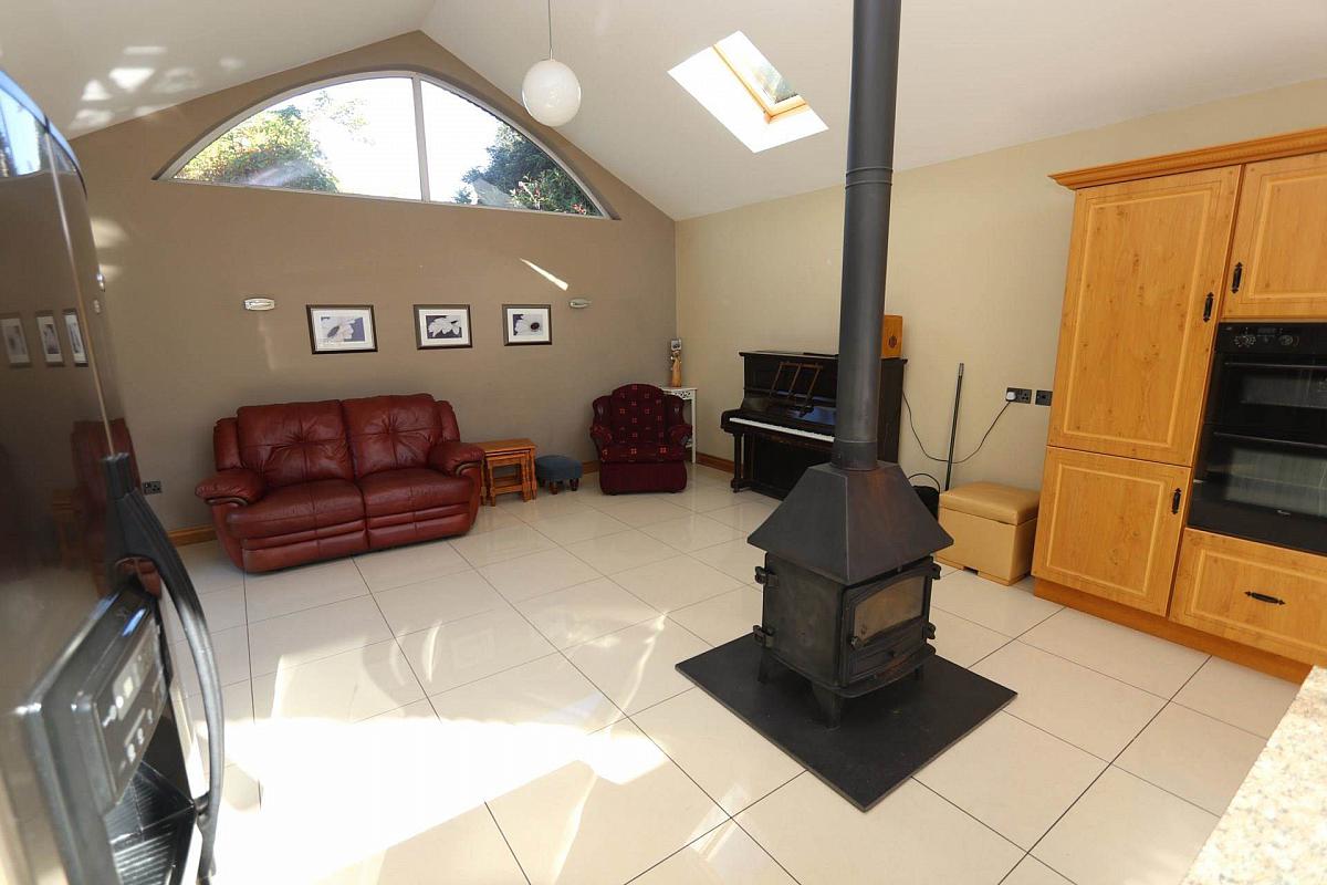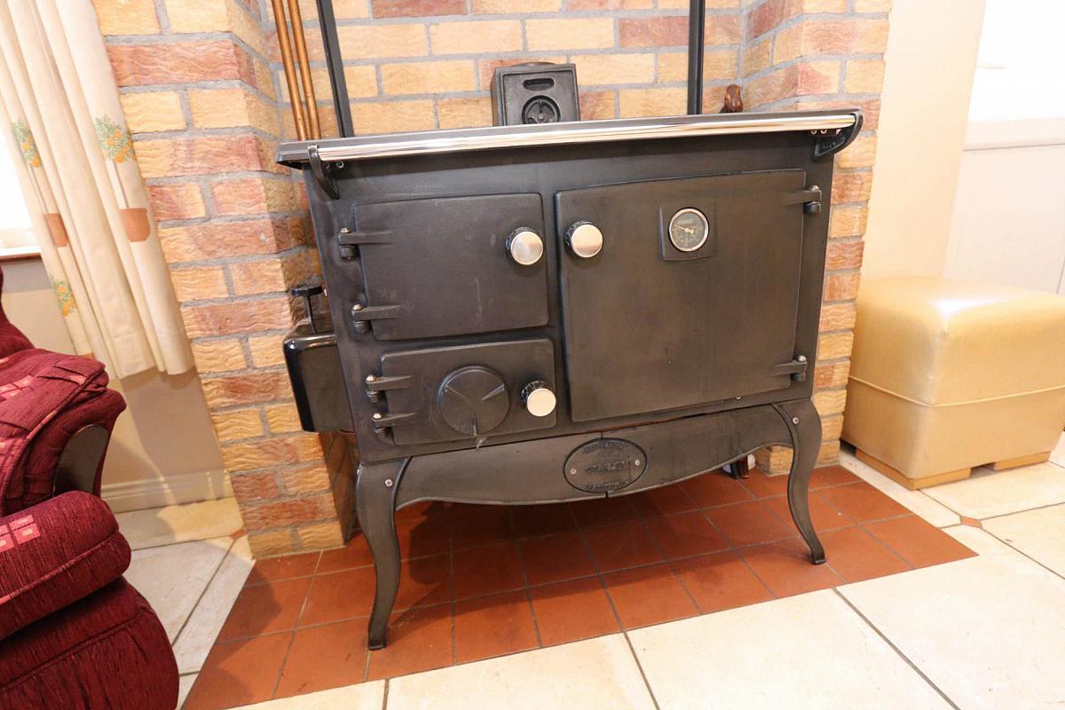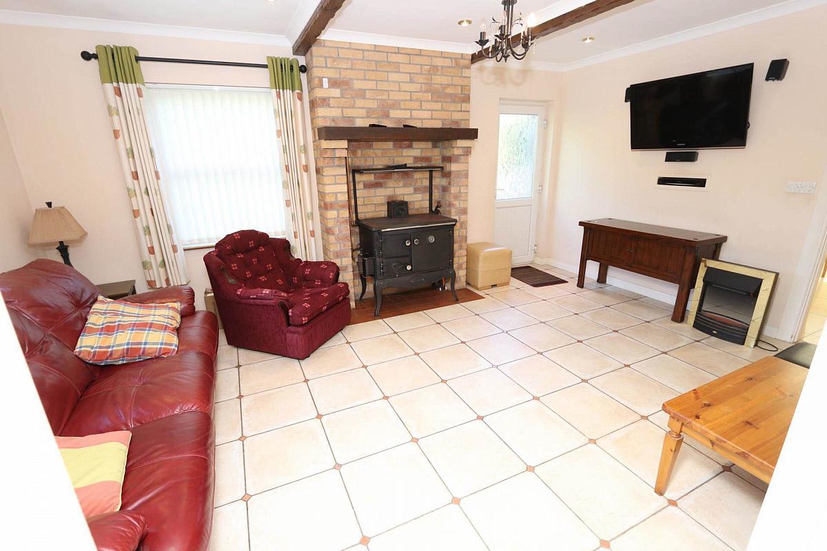 Additionally, there are two further reception rooms, one with an open fire and back boiler, and double glass doors that lead to another lounge featuring a Stanley Oil Cooker, which also heats the water, making this space warm and comfortable.