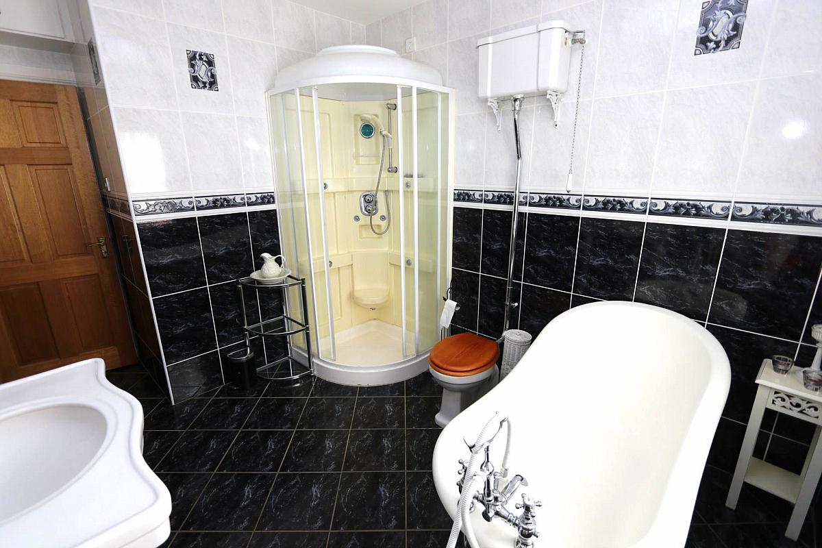 On the ground floor, you will find three bedrooms, the master inlcudes built in sliderobes and an ensuite, while two more bedrooms upstairs share a bathroom. The main family bathroom is generously sized and includes both a freestanding bath and a shower.