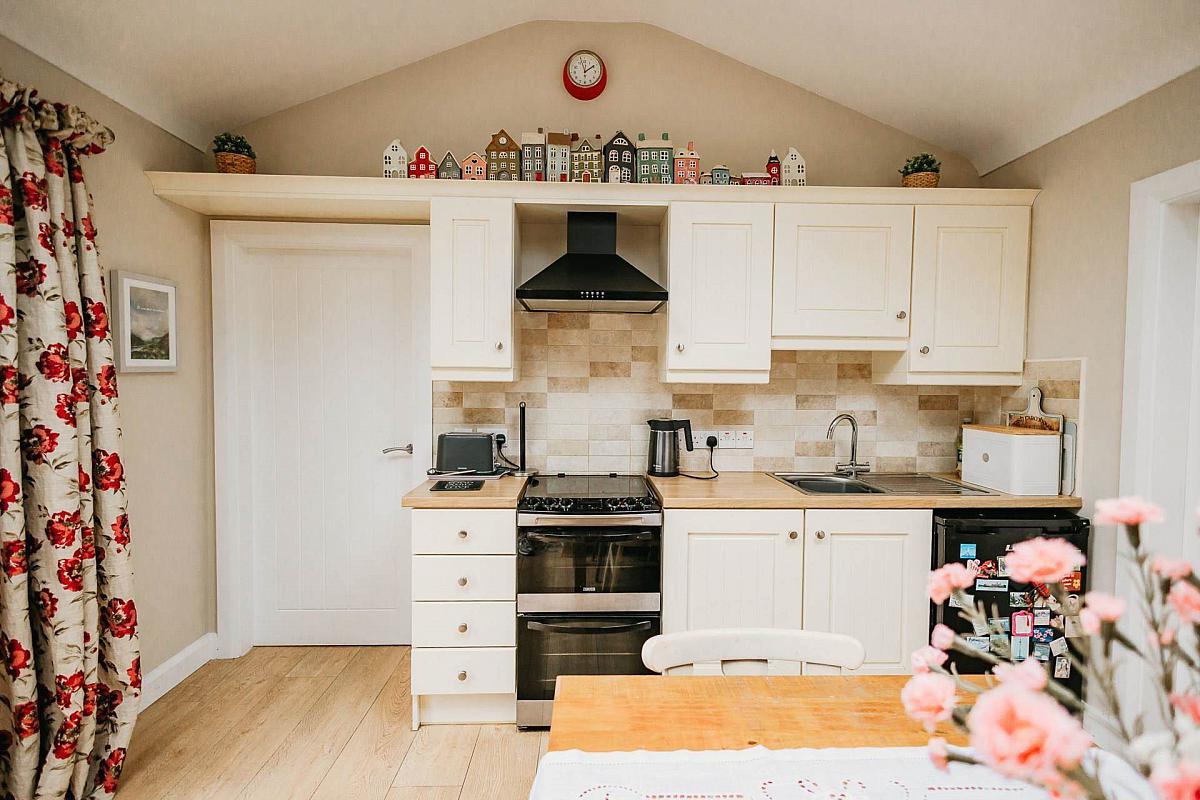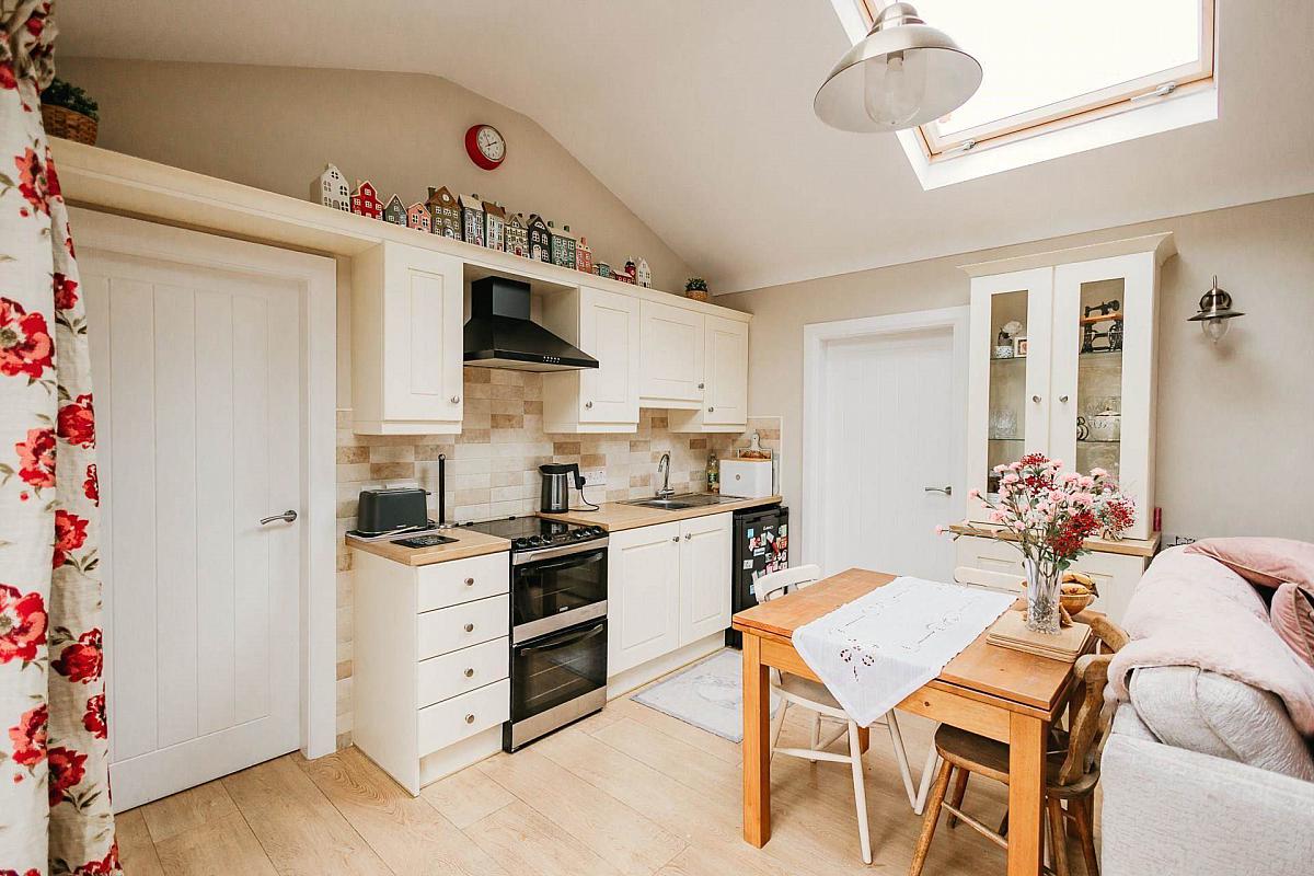 Extension - compact kitchen, living room, utility room, private bedroom, & wetroom