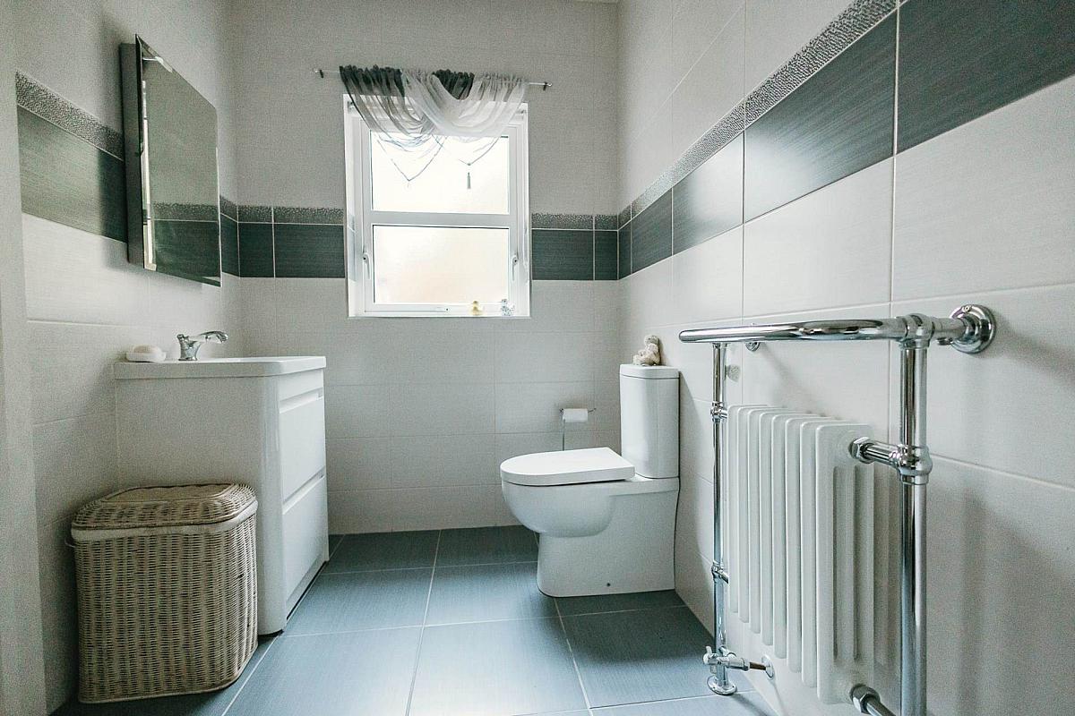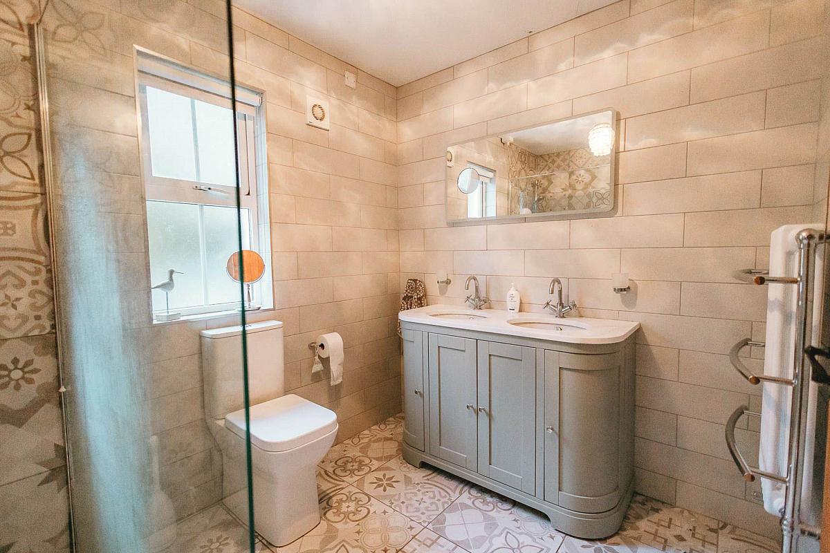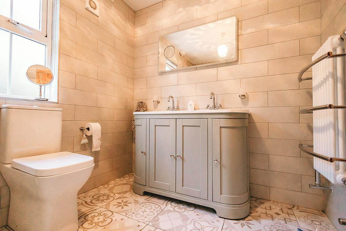 Upstairs, four generously sized bedrooms, one featuring an ensuite shower room provide ample accommodation. The updated family bathroom showcases a sleek, modern design with a double sink vanity unit and large walk in shower.
