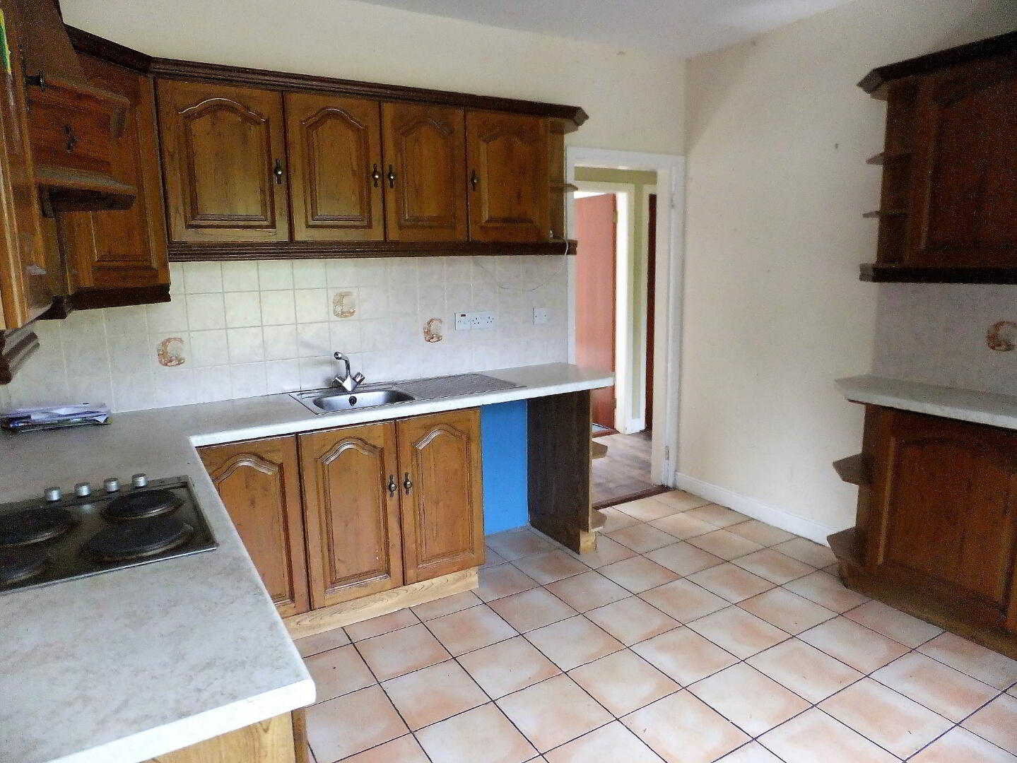 Fully fitted high and low level units. Stainless steel sink with drainer and mixer taps. Electric oven and hob. Extractor fan. Tiled floor and between units. Wooden rear door.
