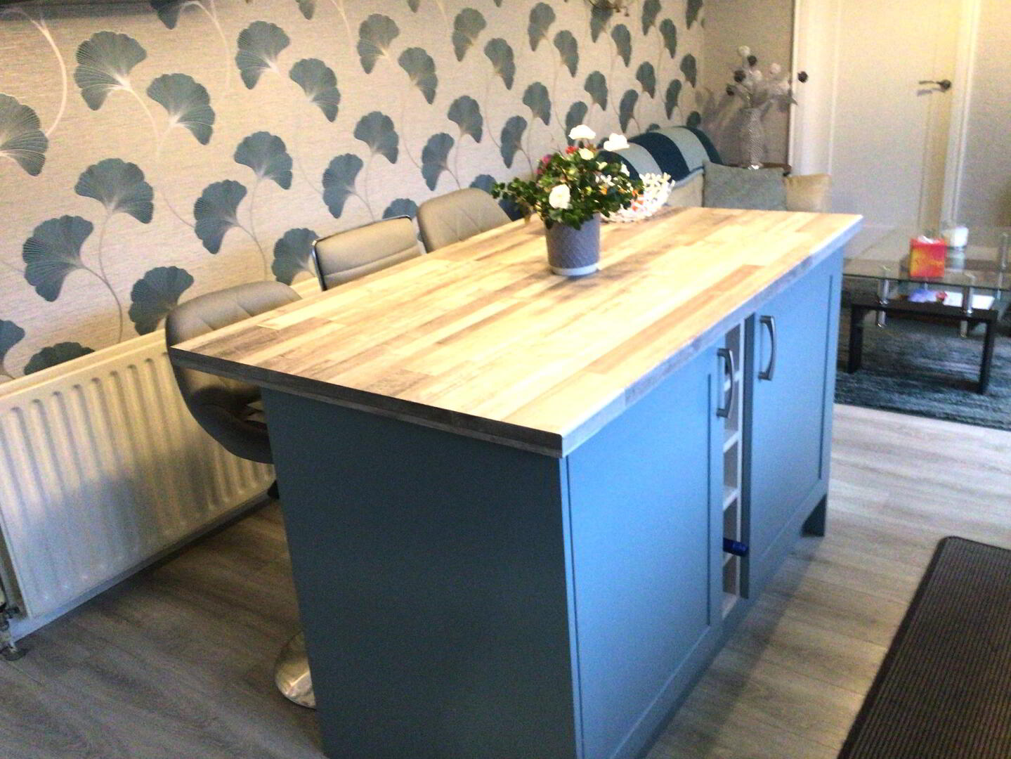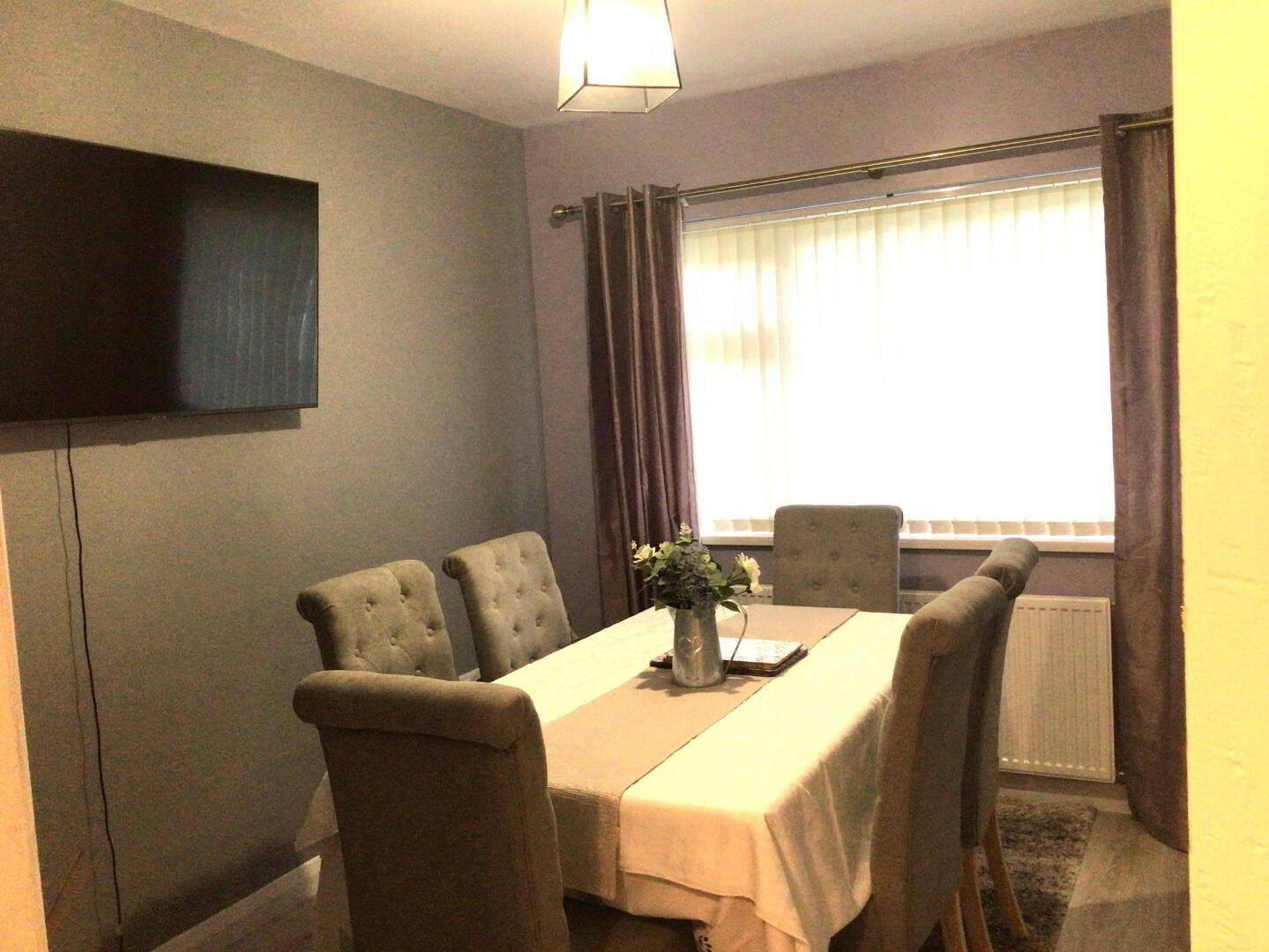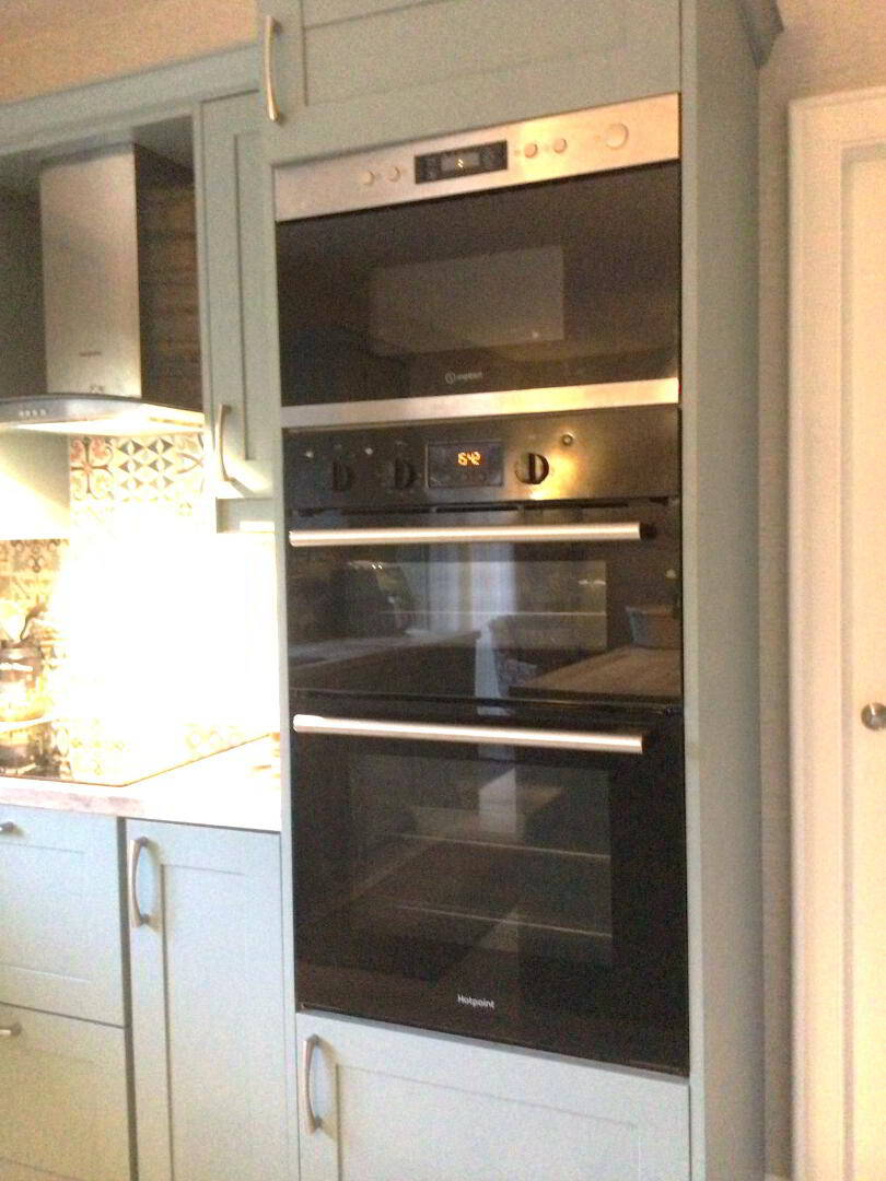 Hafela Kitchen comprising extensive range of modern high & low level units. Indesit built in 4 Plate Infa Red hobb, Built in Hotpoint Double Oven, Built in Indesit Microwave Oven. Hotpoint Stainless Steel Extractor Fan. Single Drainer Sink Unit with Salad Bowl & Mixer Taps. Built in Hoover Dishwasher. Central Island Breakfast Bar. TV Point. Patio Doors to Rear. Egger Laminate Flooring.
