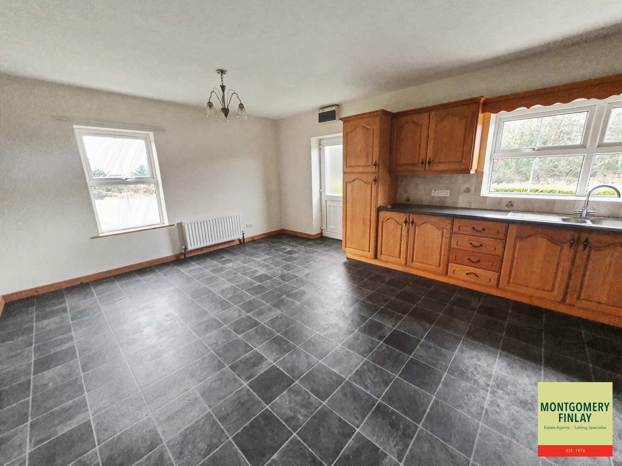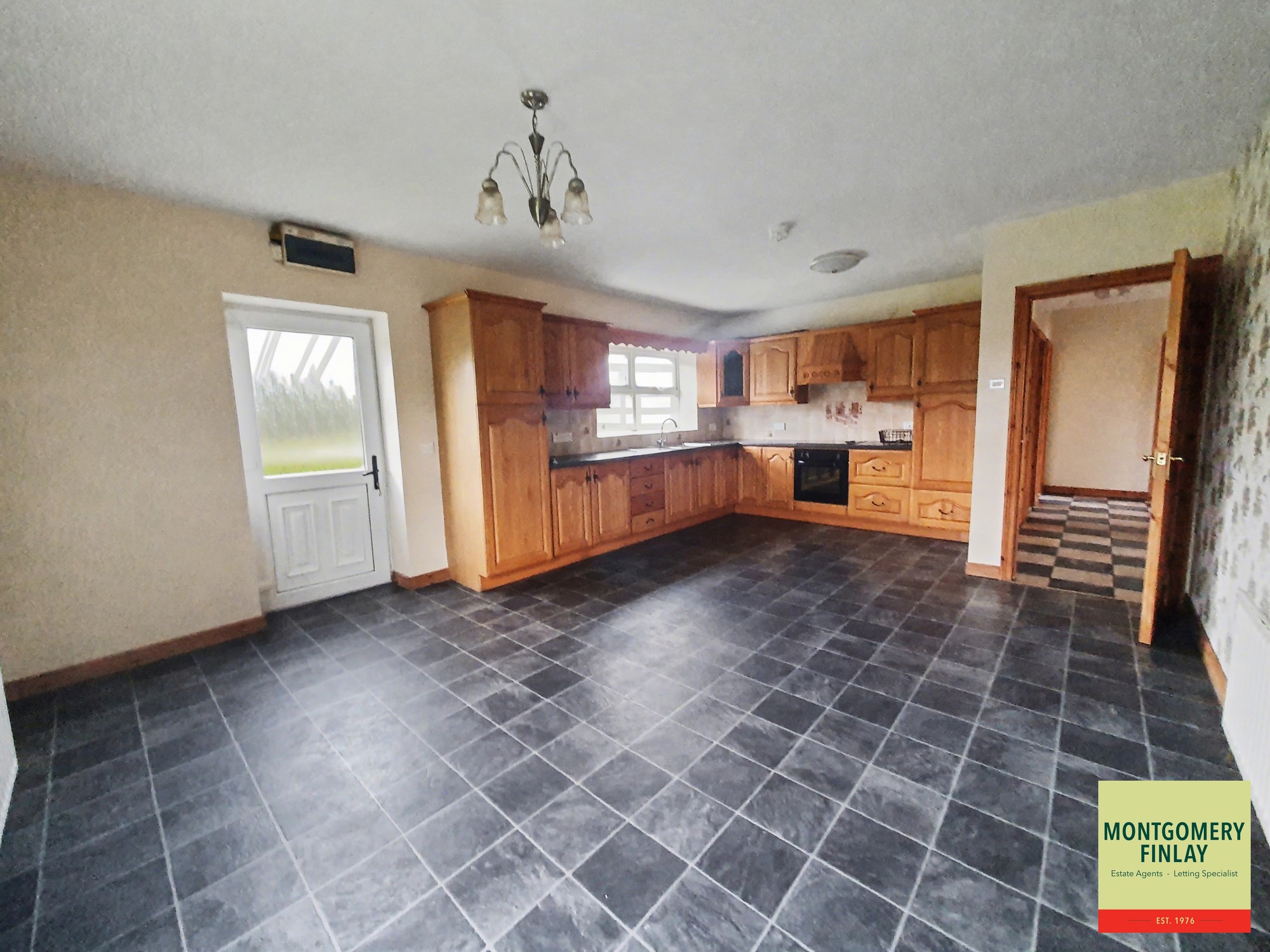 A beautifully presented two-bedroom detached bungalow set in a quiet countryside location, offering spacious accommodation, generous outdoor space, and off-street parking, while remaining within easy reach of Enniskillen town centre. The property benefits from an open-plan kitchen and dining area, a separate living room, and a main bedroom with ensuite, making it ideal for comfortable family living or those seeking a rural setting with convenience.