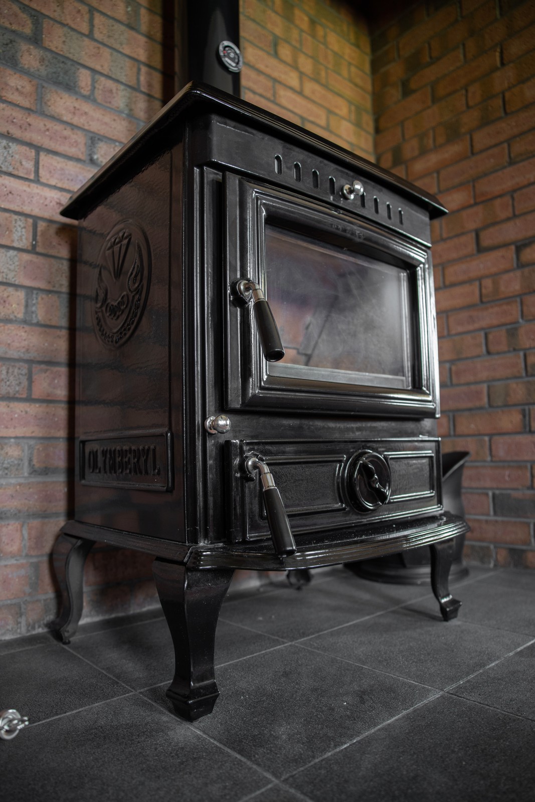 - 18KW Cast iron multi fuel stove with floor to ceiling brick surround.