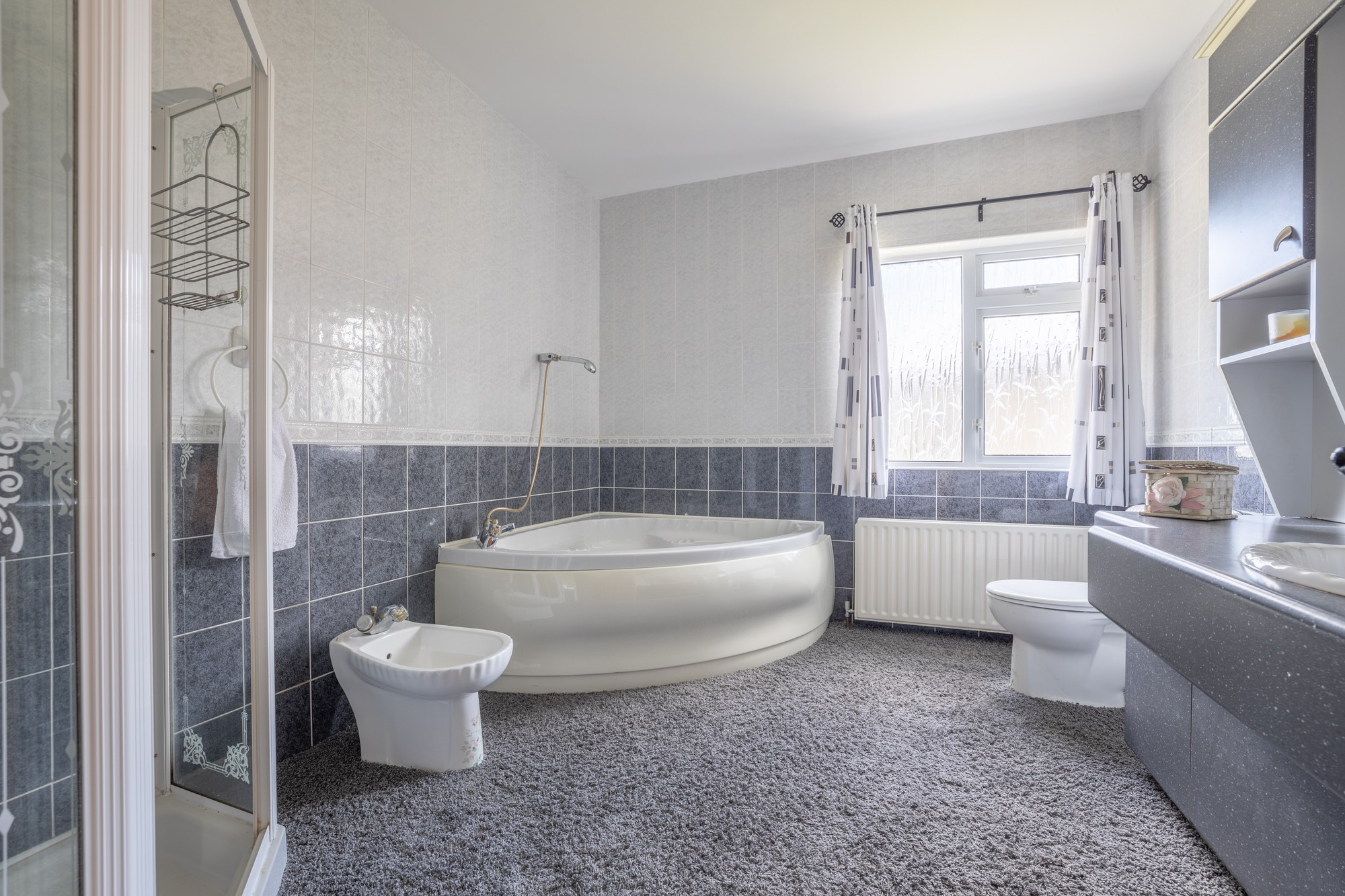- En suite comprising fully tiled walk-in electric shower cubicle, W.C., whb, half tiled walls.