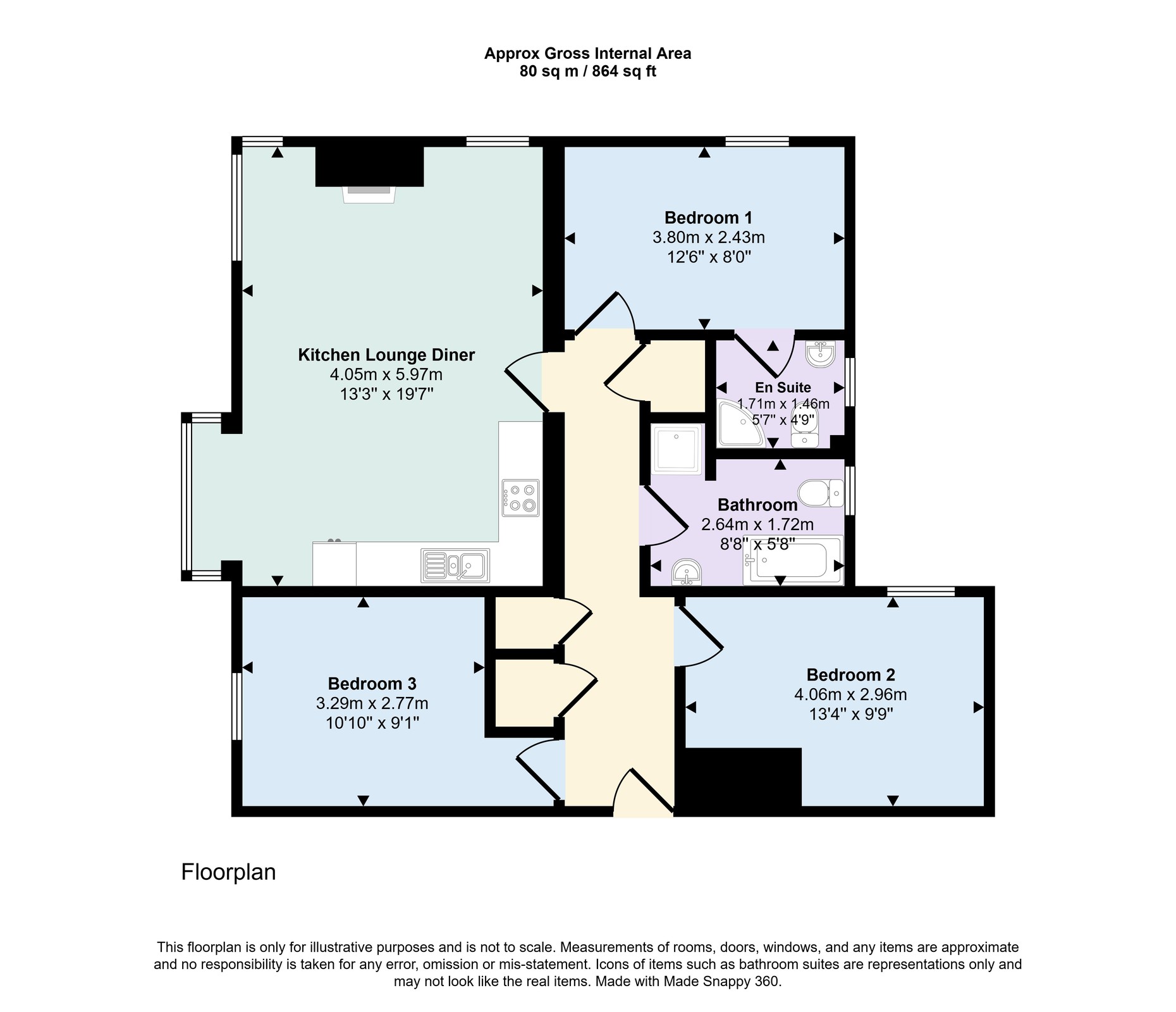 Offering bright and spacious accommodation, the property comprises an entrance hall, open plan kitchen/living/dining area, three bedrooms, bathroom, and cloaksroom. The apartment benefits from gas central heating and an excellent EPC rating of C76.