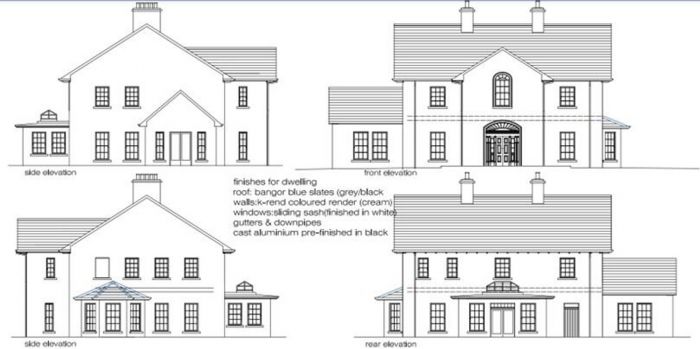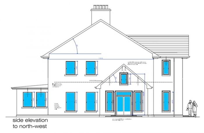 Planning permission granted, including CLUD, for a large, beautifully designed, two storey detached dwelling.Set on a spacious circa 2-acre plot with mature treeline boundary.