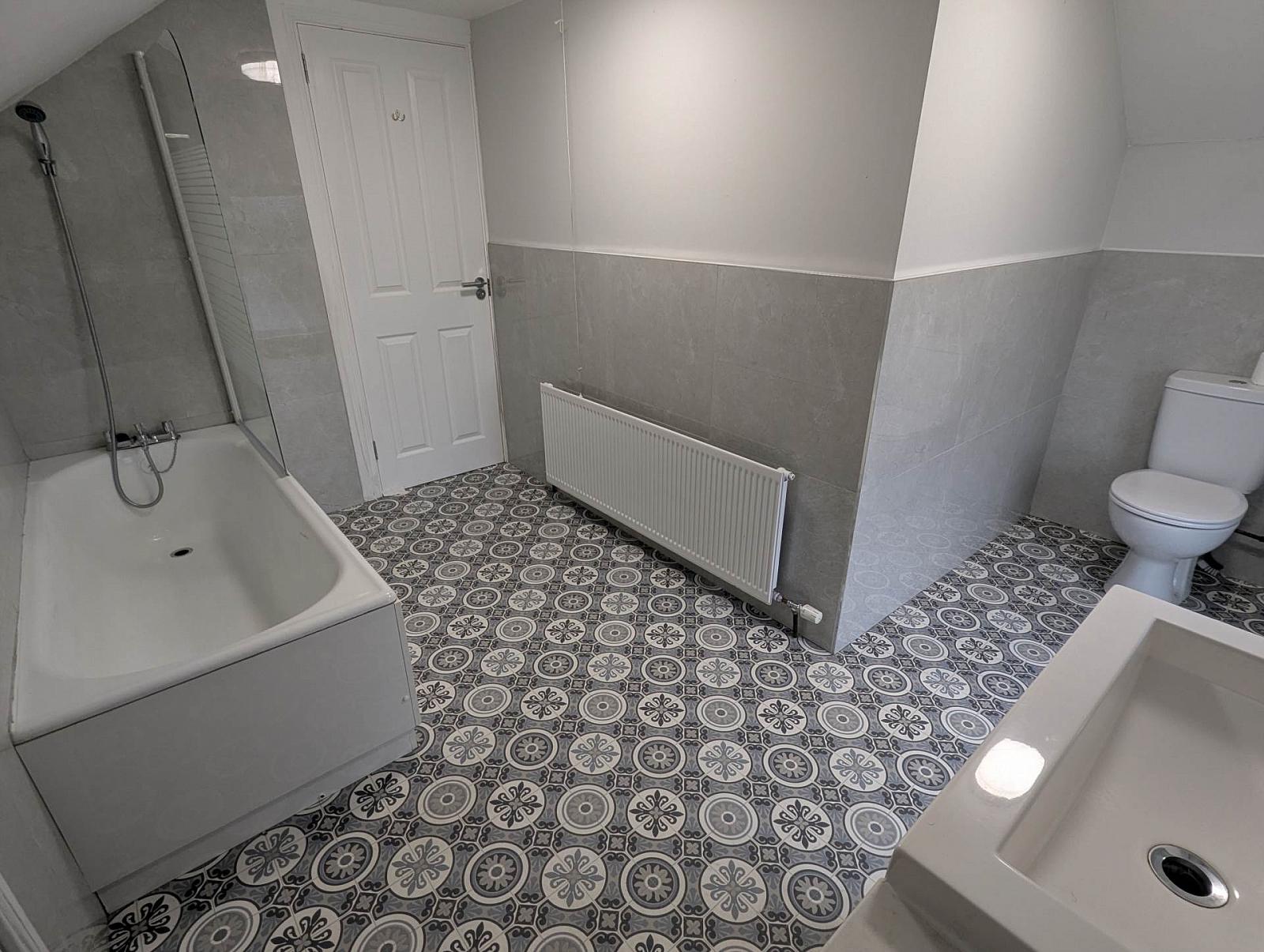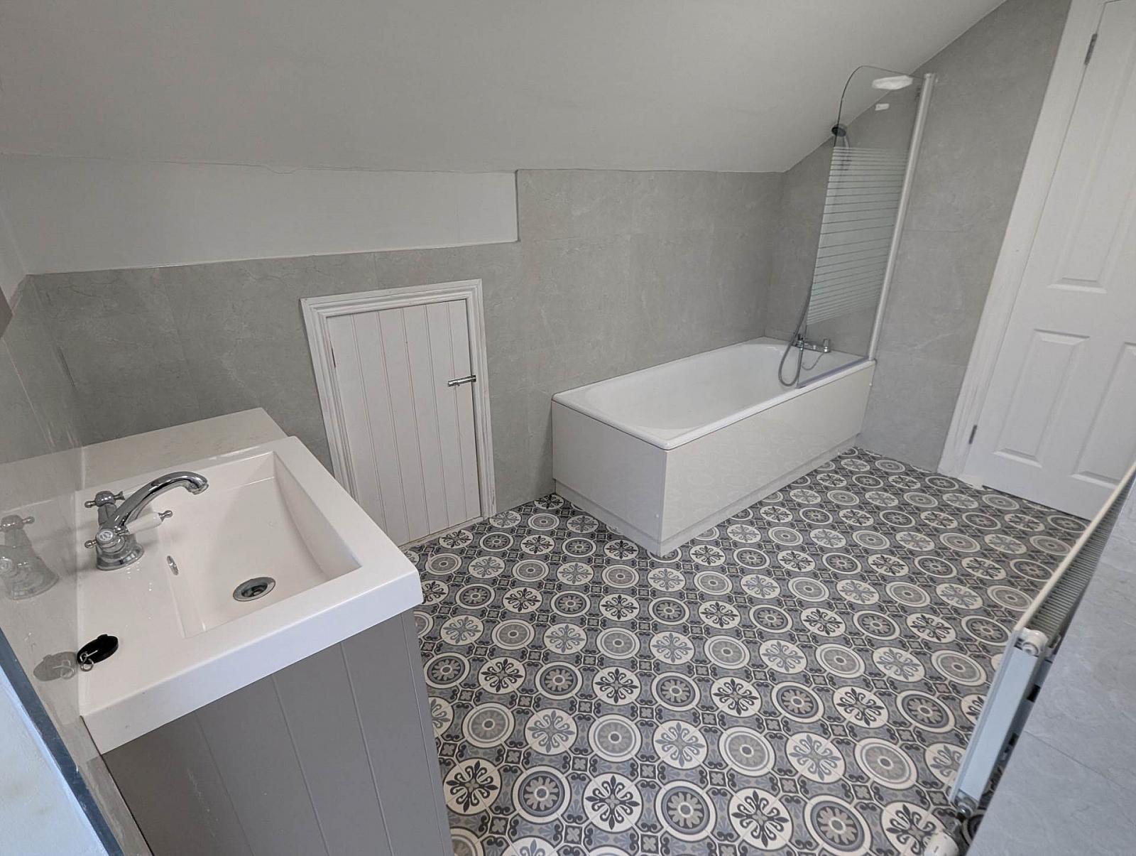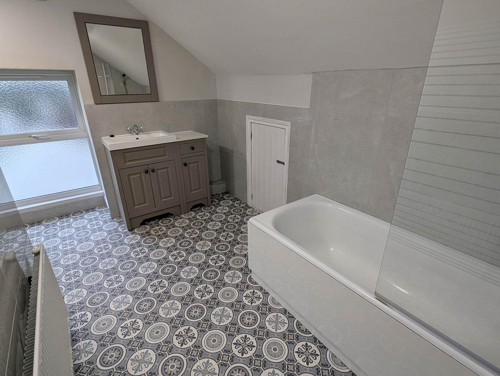 The living spaces are well-proportioned and flooded with natural light, with large windows perfectly positioned to take advantage of the lovely town views. The home features a stylish, newly fitted bathroom with modern tiling and fittings, combining practicality with a sleek design.