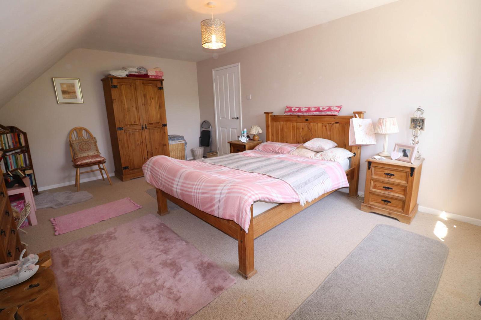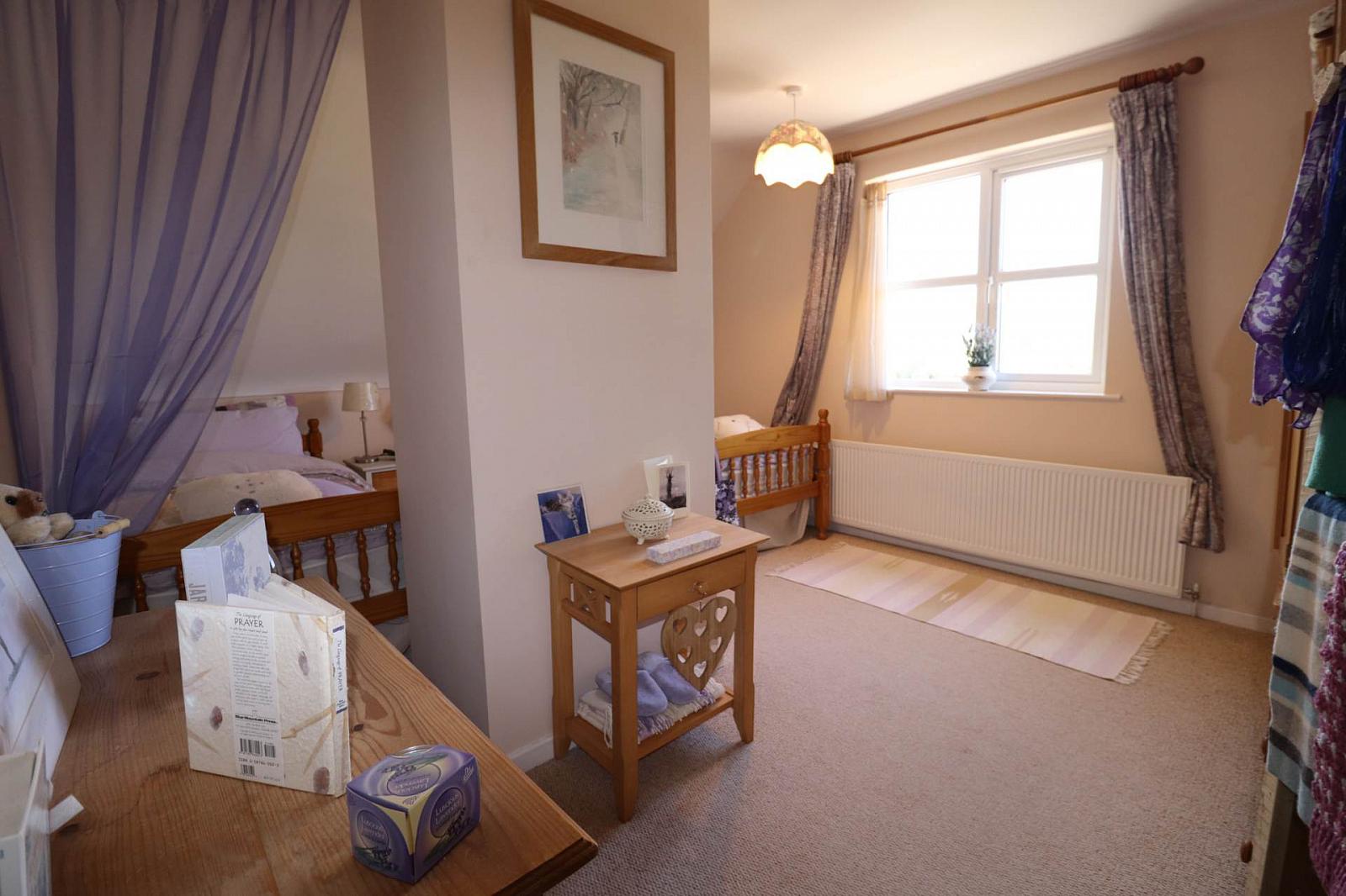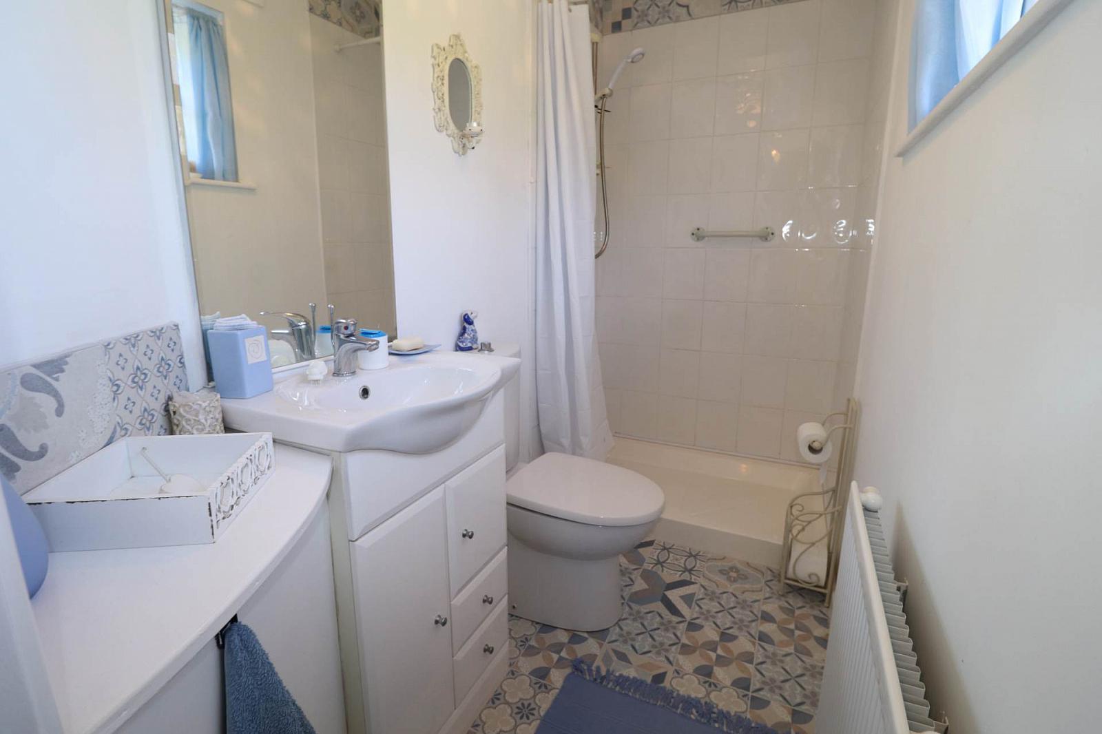 One of the three generously sized bedrooms is conveniently located on the ground floor, alongside a bathroom complete with a walk-in shower, WC, and a wash hand basin with vanity unit, ideal for ground-floor living needs.