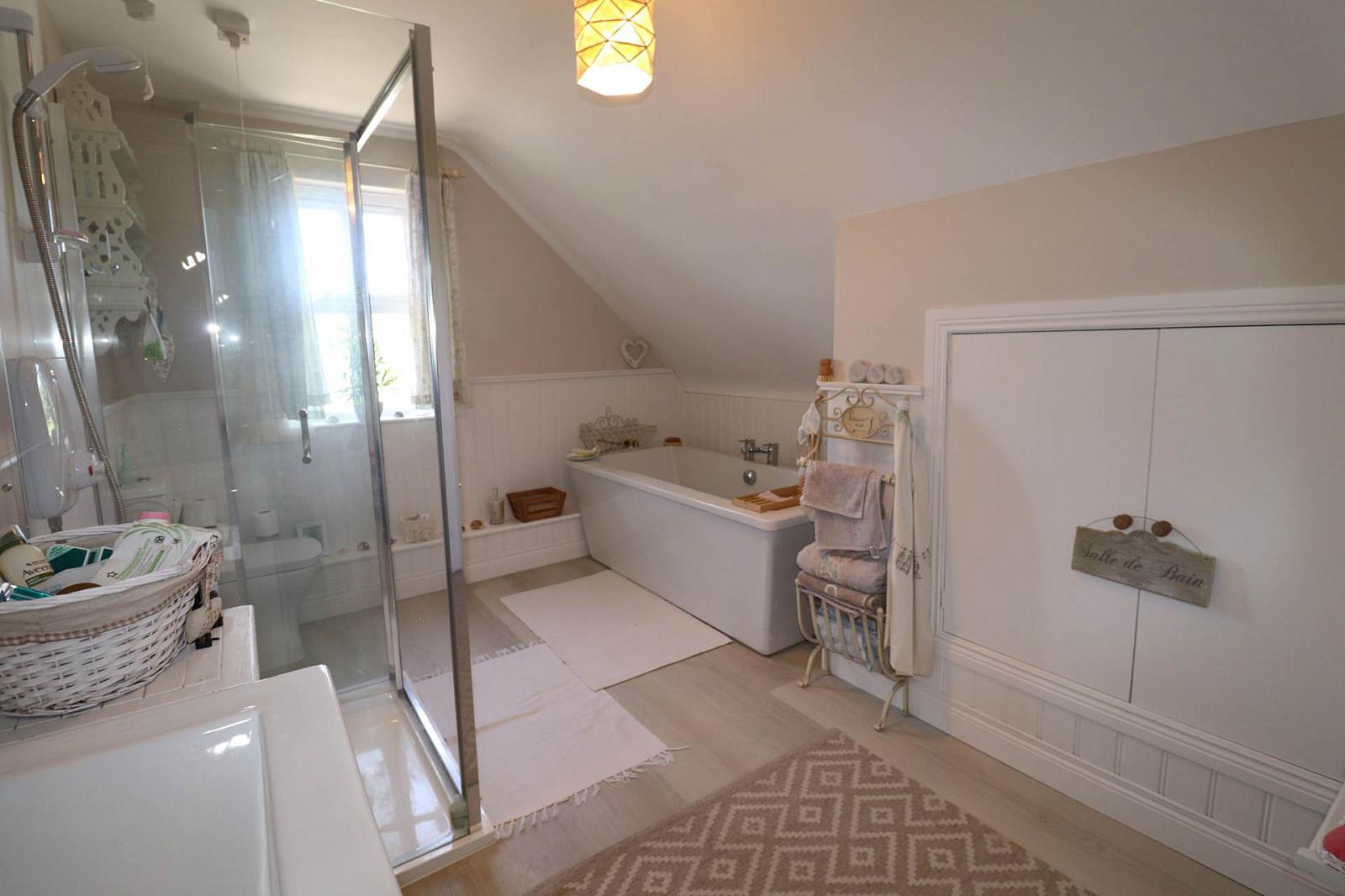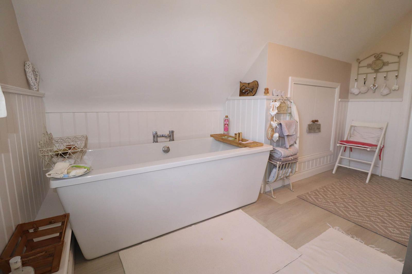 Upstairs, you`ll find two further spacious bedrooms and a beautifully renovated family bathroom. Designed with a modern country feel, this space features a freestanding bath, walk-in shower, vanity unit, built-in cupboard space.