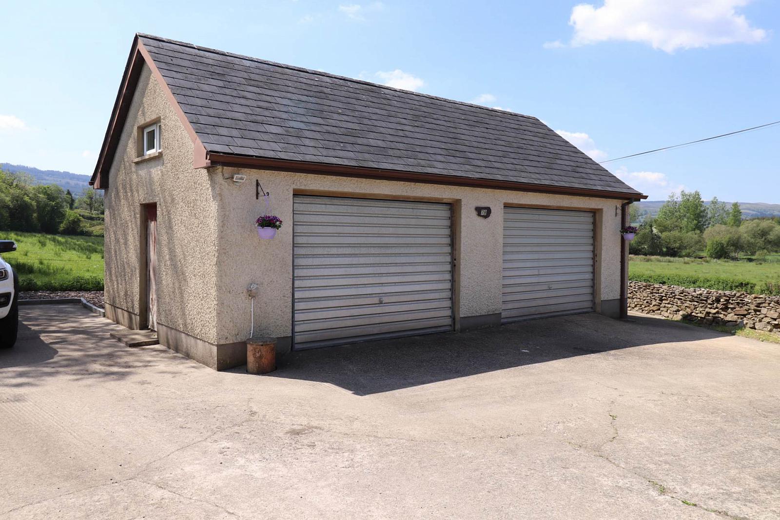 Externally, the property is just as impressive. Set on an enclosed site with stunning countryside views, the outside space is a mix of concrete yard, stone-finished garden areas, mature shrubs and trees. The property also benefits from a double garage and a separate outbuilding currently used as a utility area but offering versatile potential as an office, studio, or additional storage.